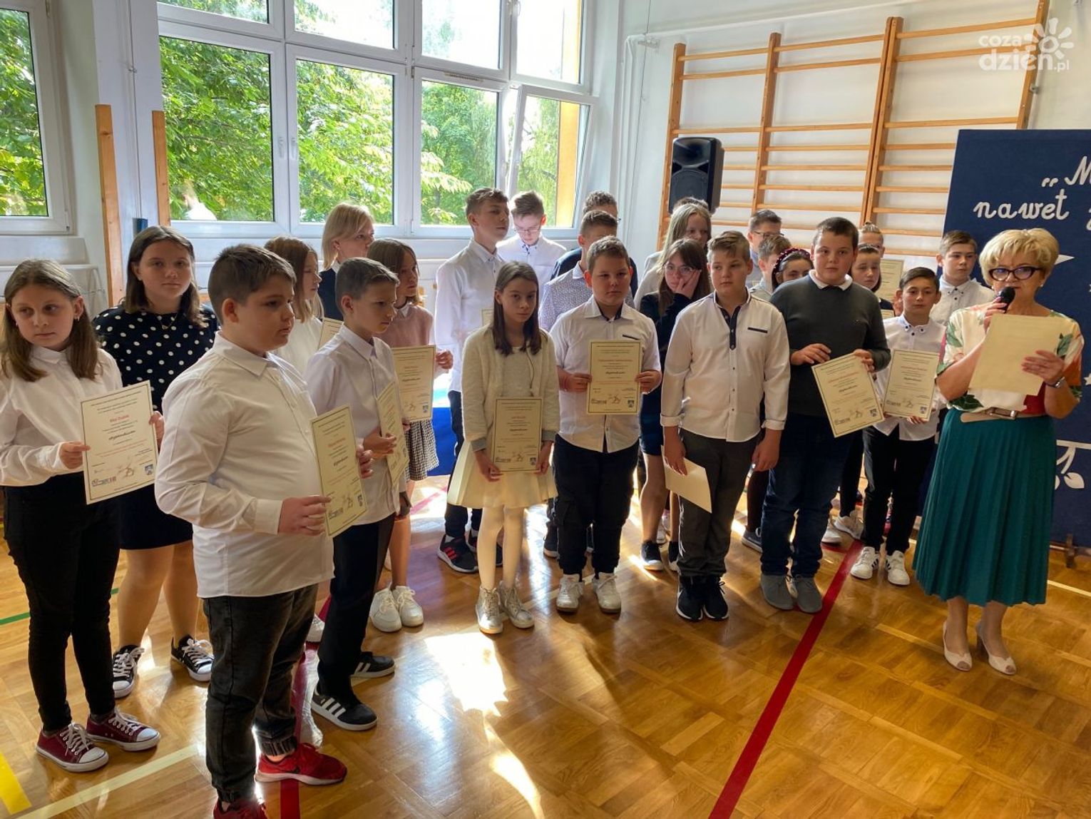 - Jestem bardzo dumna ze swoich uczniów, tym bardziej, że poprzedni rok był bardzo trudny, wyjątkowy i pandemiczny. Tak naprawdę dzieci musiały wziąć gro odpowiedzialności za swoją wiedzę i umiejętności. Oczywiście wielki w tym udział jest mojej kadry pedagogicznej - mówiła dyrektor Stojek.