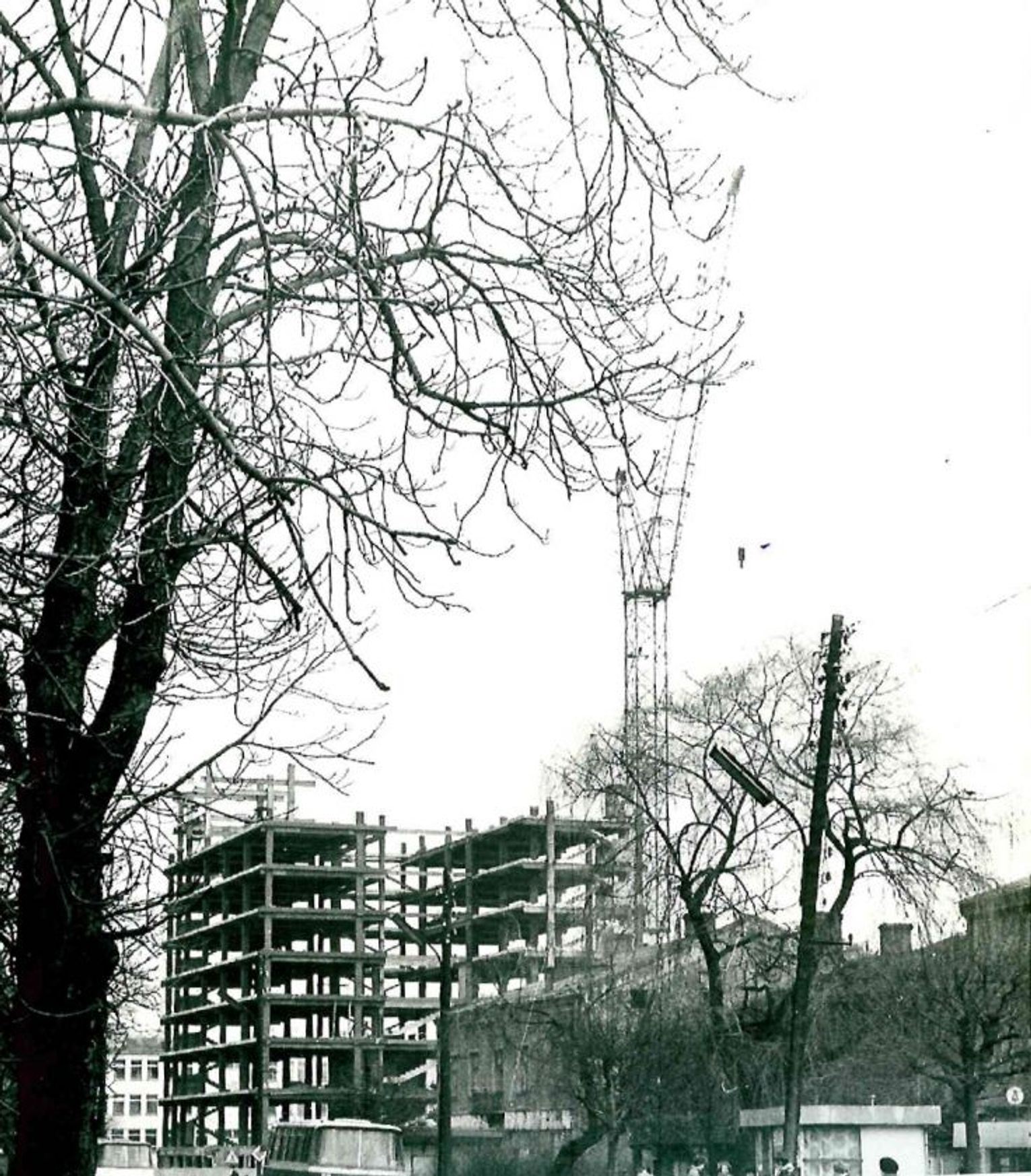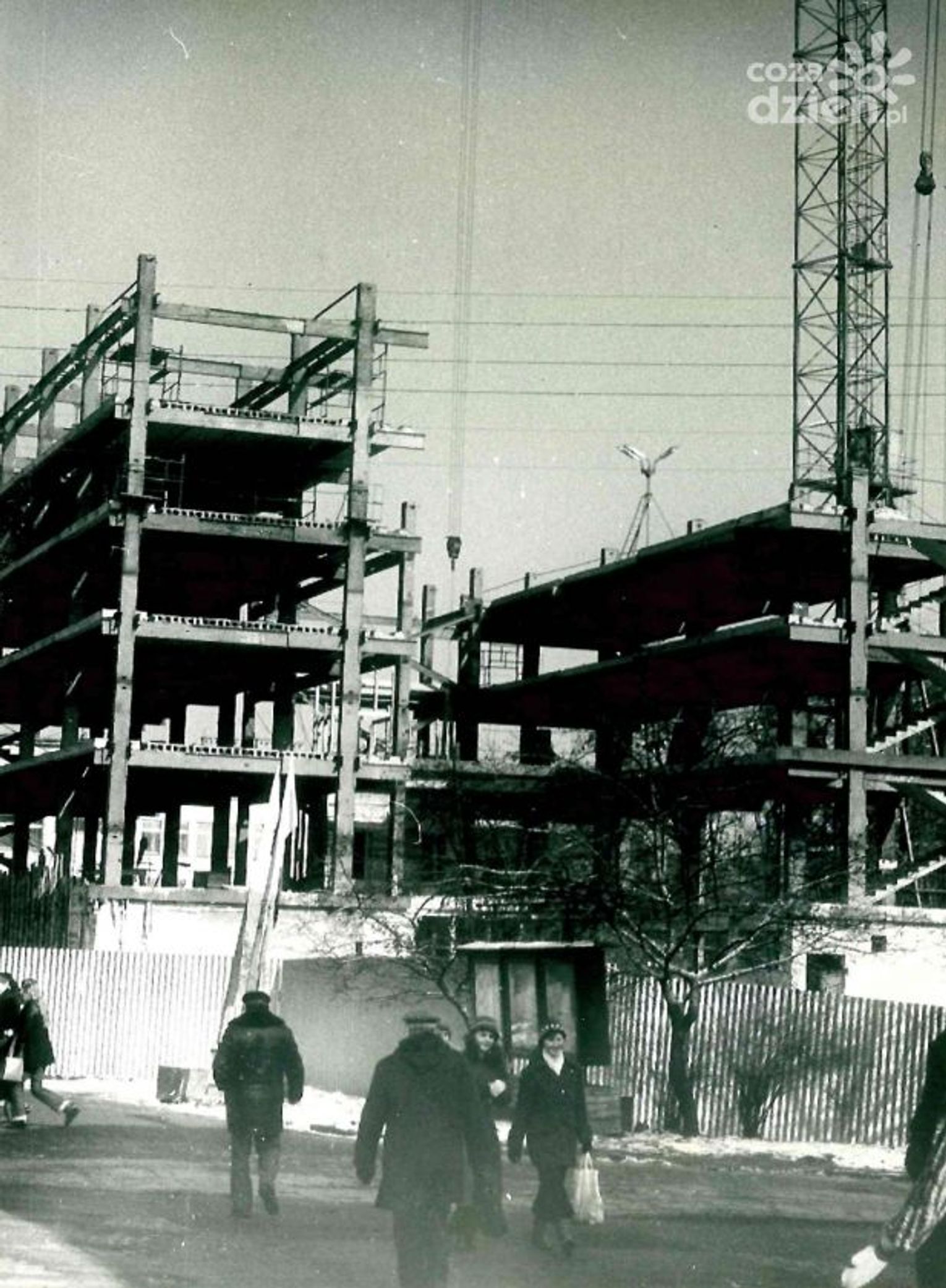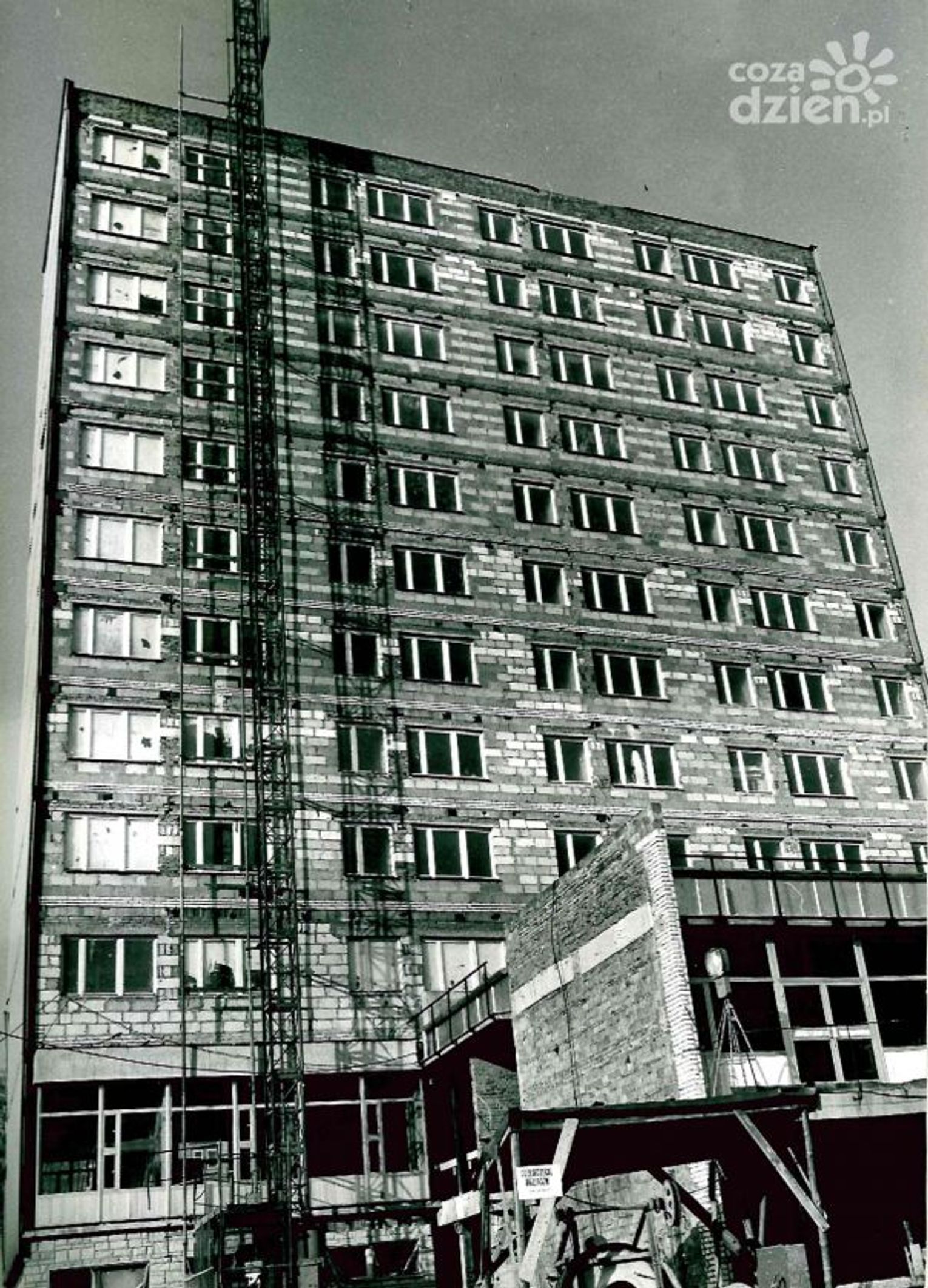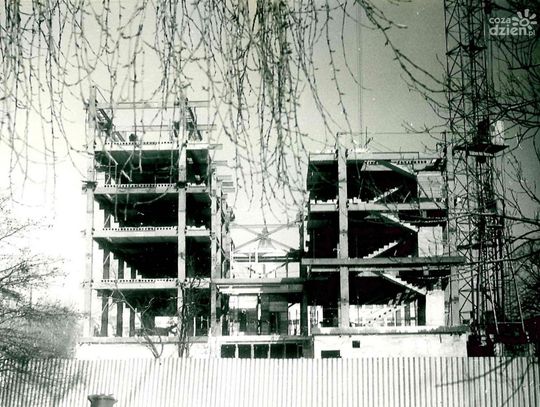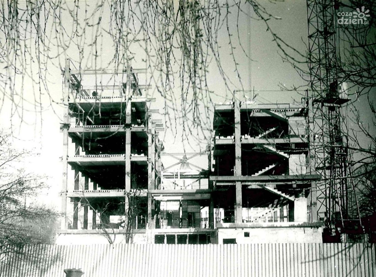 Ostatnio można było zobaczyć pewne zdjęcia, mówiące nie tylko o historii naszego miasta i historii hotelu, ale też przywołujące bardzo fajne wspomnienia. Pierwsze są czarno-białe, pokazują budynek naprzeciwko, czyli budynek starej poczty. Tu, gdzie obecnie jest hotel widać jedną wielką dziurę. Które to były lata?