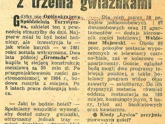 Albo na trzydzieste. Uroczyste otwarcie hotelu Łysica nastąpiło w 1989 roku.