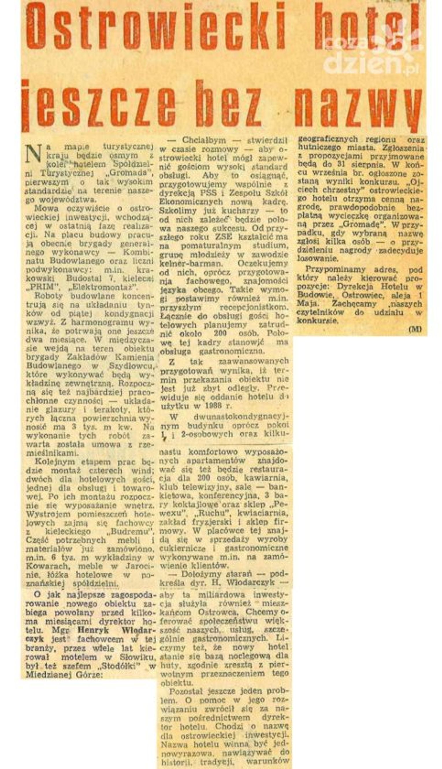 Opisują historię powstania, jakie były plany związane z budową hotelu w mieście, bo najpierw miał być to hotel hutniczy, później miejski. Ostatecznie odkupiła go Gromada i dokończyła budowę.