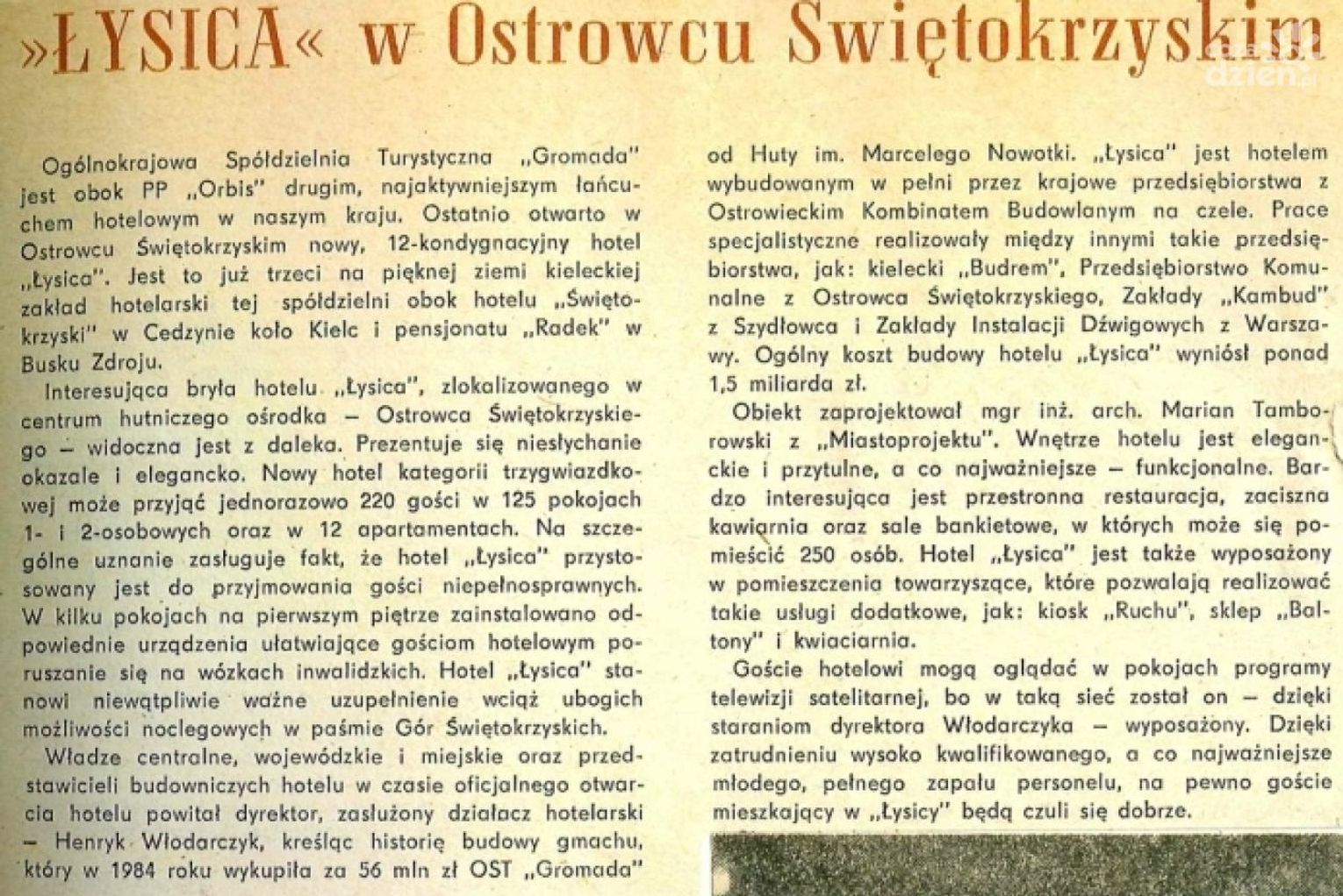 W latach 70. to była duża firma, podzielona na różne segmenty. Miała zarówno sieć hoteli, jak i ośrodków wypoczynkowych. Jednym z jej elementów był właśnie hotel „Gromada Łysica” w Ostrowcu Świętokrzyskim.