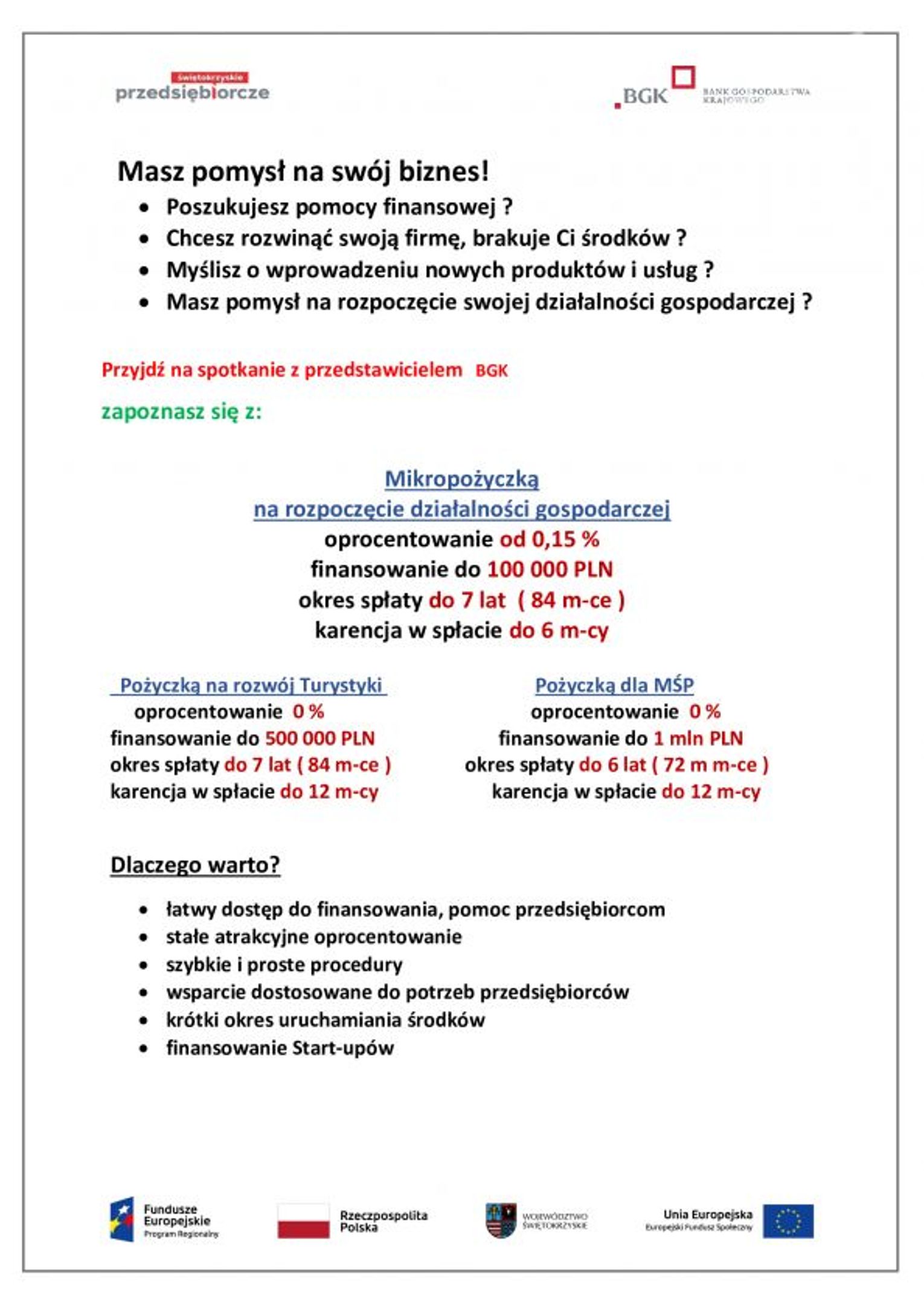 Spotkanie z udziałem eksperta BGK odbędzie się w dniu 6 października 2021 r. o godz. 10.00 w Sali konferencyjnej Starostwa Powiatowego w Ostrowcu Świętokrzyski, ul. Iłżecka 37.