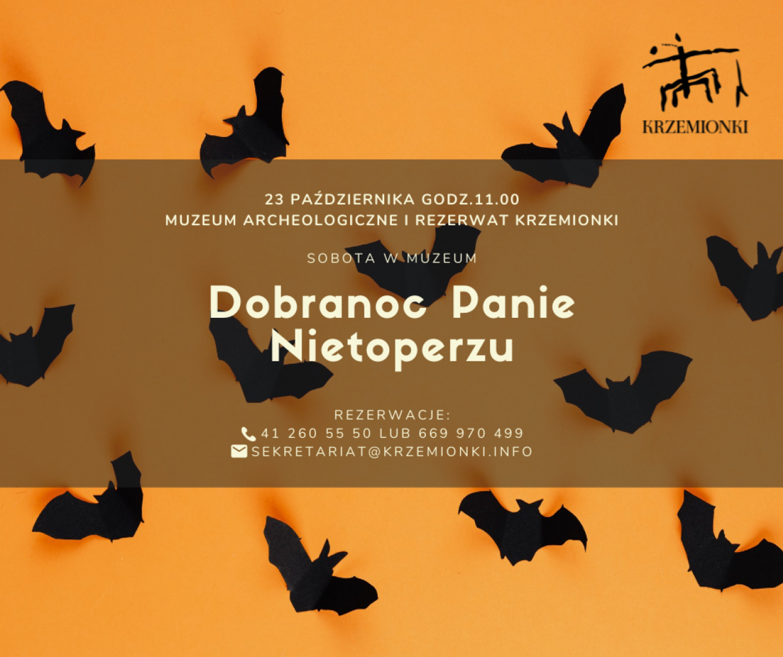 Bohaterem cyklu "sobota w muzeum" na Krzemionkach będzie nietoperz, który głównie kojarzony jest jako żywiące się krwią, wplątujące we włosy stworzenie. Organizatorzy chcą odczarować mity na jego temat i proponują spacer po obiekcie, w trakcie którego uzupełnią i wzbogacą wiedzę na temat nietoperzy i pozwolą „spojrzeć” na świat z ich perspektywy. Zajęcia będą połączone z warsztatem plastycznym.