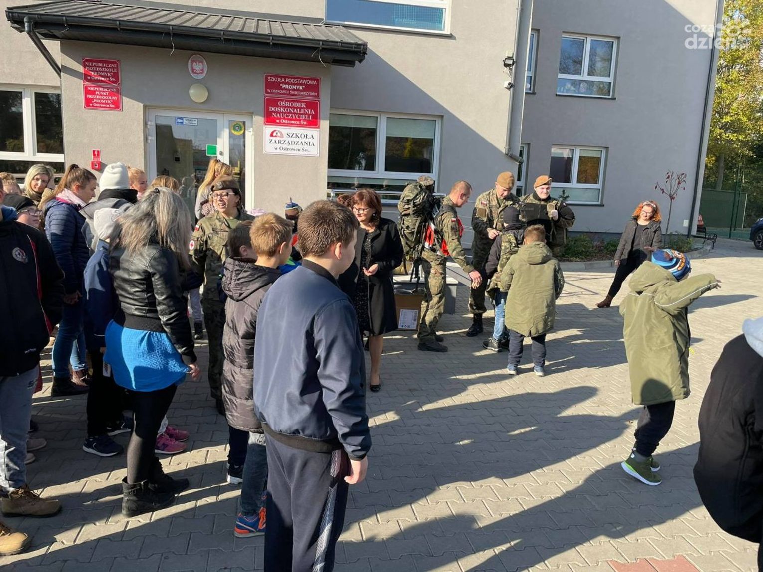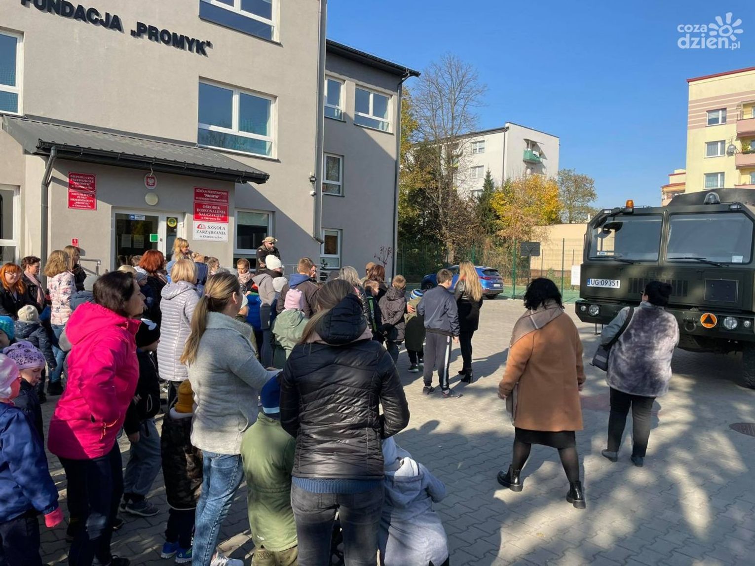 Uczniowie placówki z niecierpliwością oczekiwali na przyjazd swoich gości, a widok wojskowym pojazdów wywołał niemałe emocje. A to był dopiero początek atrakcji związanych z dzisiejszym wydarzeniem.