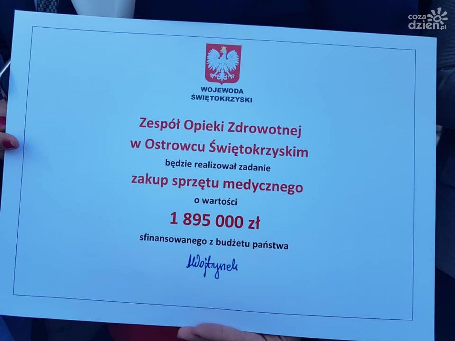 Ostrowiecka lecznica otrzymała dokładnie 1 mln 895 tys. zł z budżetu państwa. Jak podkreśla starosta Zbigniew Duda, pieniądze te to nie dofinansowanie, tylko sfinansowanie, czyli realna pomoc dla szpitala.