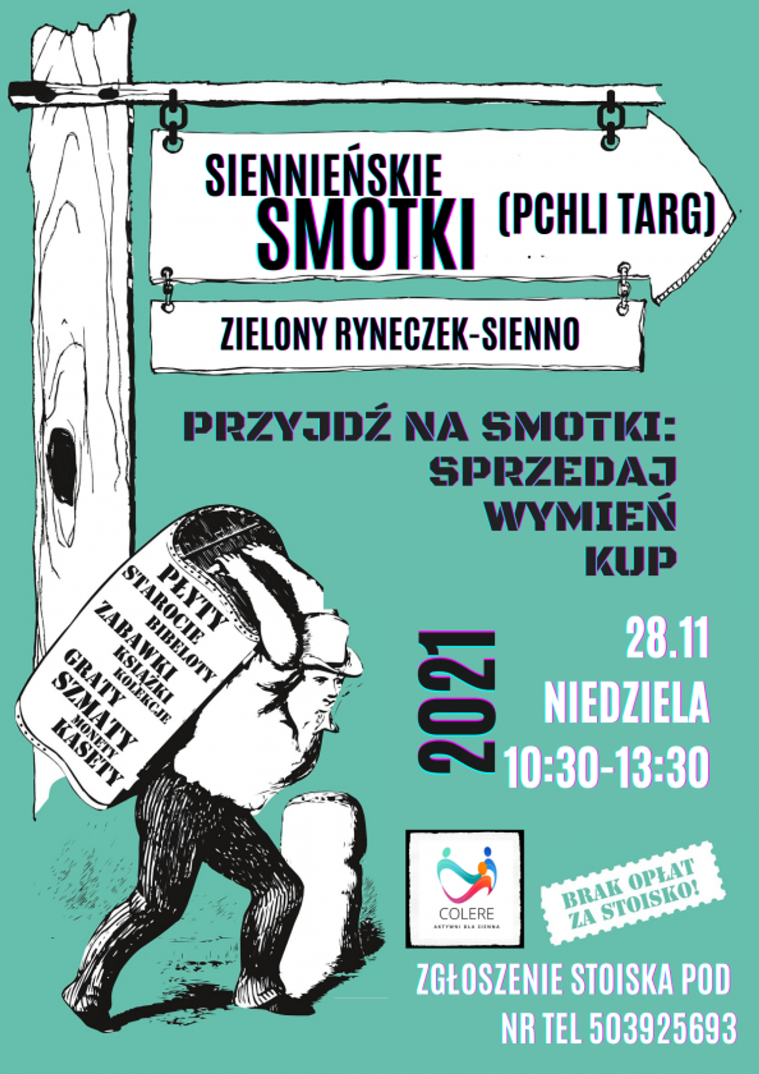 W najbliższą niedzielę na "Zielonym Ryneczku" w Siennie odbędzie się pchli targ. Organizatorzy oferują bezpłatne stosika na których nabyć lub sprzedać będzie można zalegające przedmioty: starocie, książki, zabawki, monety czy kasety. Wydarzenie odbędzie się w godzinach od 10:30 do 13:30, a rezerwacji stoiska można dokonać telefonicznie.