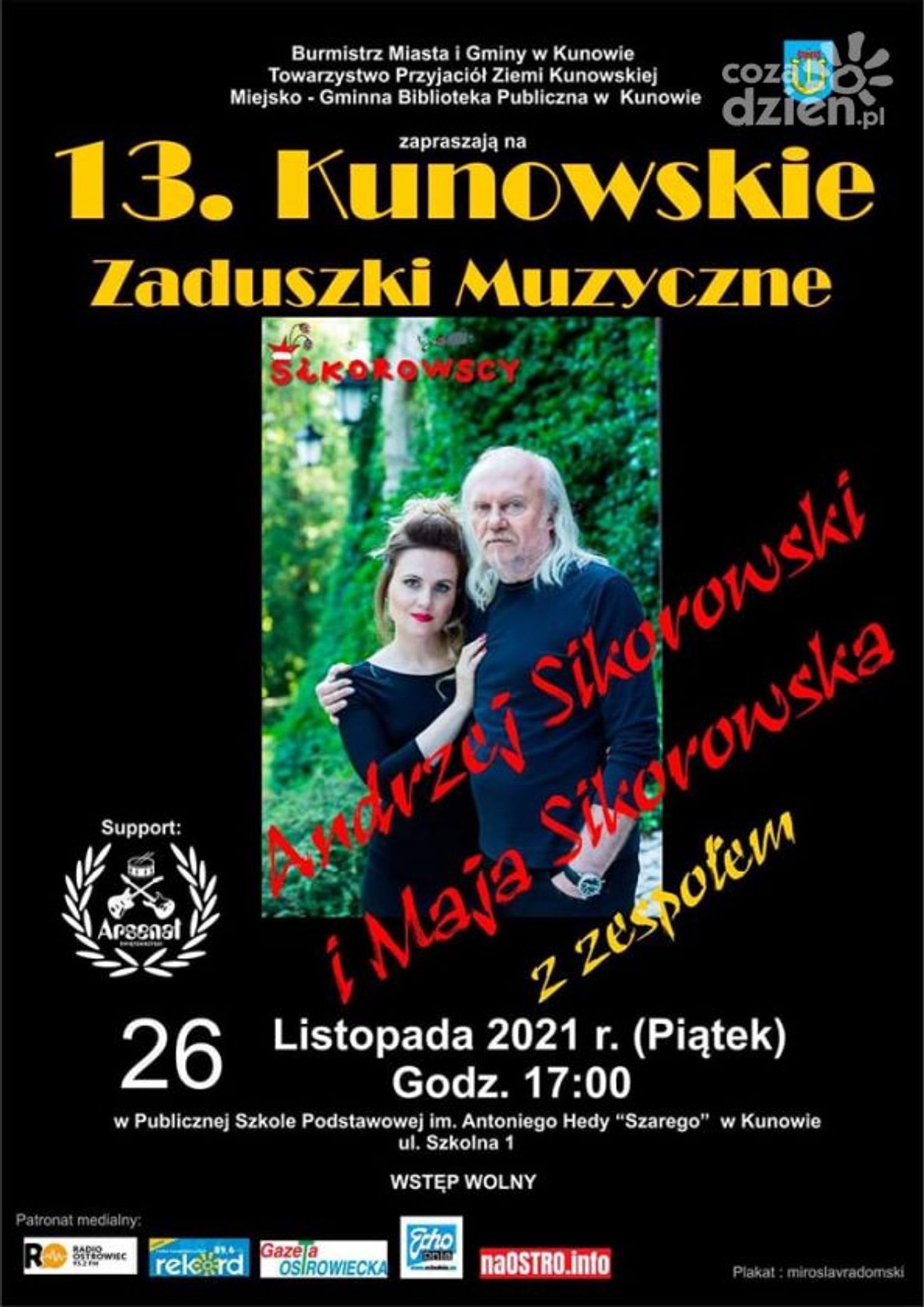 Koncert odbędzie się w Kunowie, w ramach 13. Kunowskich Zaduszek Muzycznych dzisiaj, czyli 26 listopada. W repertuarze znajdą się miedzy innymi utwory z ostatniej wspólnej rodzinnej płyty Sikorowskich zatytułowanej "Okno na Planty". Koncert rozpocznie się rozpocznie się o godzinie 17 w szkole podstawowej przy ulicy Szkolnej. Wstęp wolny a przed rodziną Sikorowskich wystąpi grupa Arsenał Świętokrzyski.