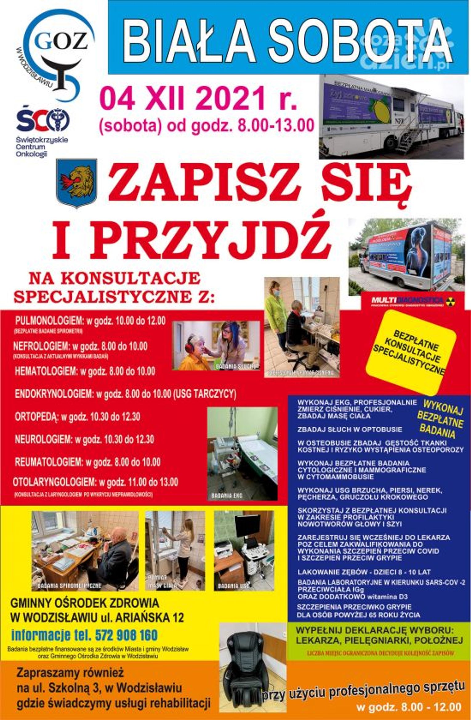4 grudnia – w Wodzisławiu, podczas białej soboty(https://www.gozwodzislaw.com/aktualnosci.php#aktualnosci ) przy Gminnym Ośrodku Zdrowia w Wodzisławiu, ul. Ariańska 12