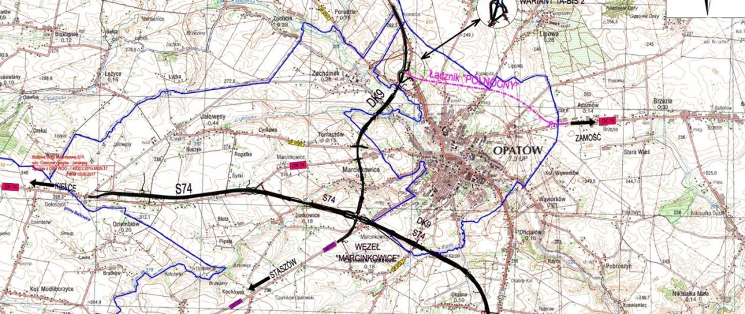 Mogą ruszać prace projektowe tzw. północnego łącznika obwodnicy Opatowa. Generalna Dyrekcja Dróg Krajowych i Autostrad podpisała już umowę z firmą Mostostal, która wygrała przetarg na te prace. Nowy odcinek drogi uzupełnieni bardzo ważną inwestycję jaką jest budowa obwodnicy miasteczka. Tzw. północna obwodnica pozwoli bowiem na usprawnienie ruchu tranzytowego między drogami krajowymi nr 9 oraz 74. Dzięki budowie łącznika, kierowcy podróżujący na trasach Kielce- Lublin oraz Radom - Ostrowiec Świętokrzyski- Annopol- Kraśnik, nie będą musieli wjeżdżać do maleńkiego Opatowa. Łącznik ma mieć niespełna 3 kilometry, powstaną na nich aż trzy skrzyżowania z drogami powiatowymi. Nowa jezdnia ma być gotowa do roku 2025.