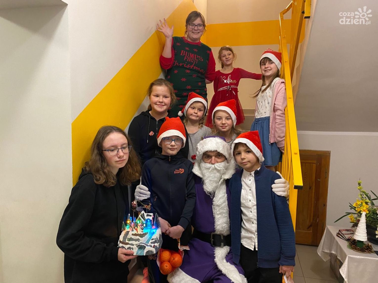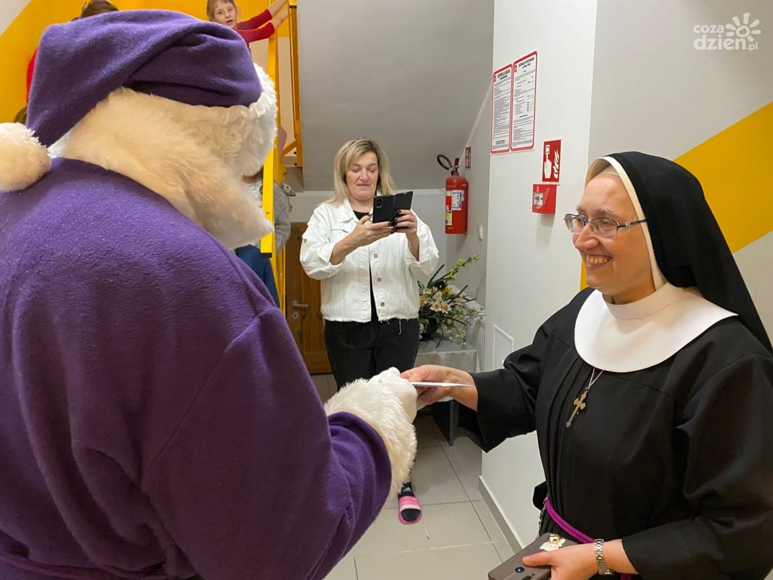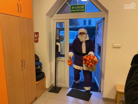Fioletowy pomocnik Świętego Mikołaja odwiedził dzieci z Zespołu Placówek Opiekuńczo-Wychowawczych "Nasz Dom" w Denkowie. Oczywiście nie przyszedł z pustymi rękami. Do dzieciaków oprócz słodkości i owoców trafiła też pewna niespodzianka.