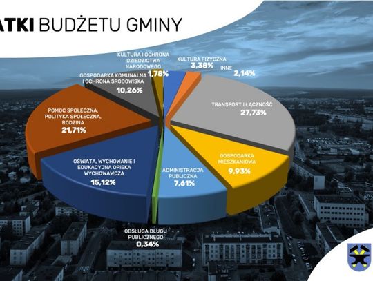 Wydatki zapisane w gminnym budżecie wynoszą: 406.052.737,99 zł, natomiast planowane dochody to kwota: 333.616.383,50 zł. Kwota 129 mln zł to fundusze pozyskane z zewnętrznych źródeł finansowania, w tym budżetu unijnego i krajowego.