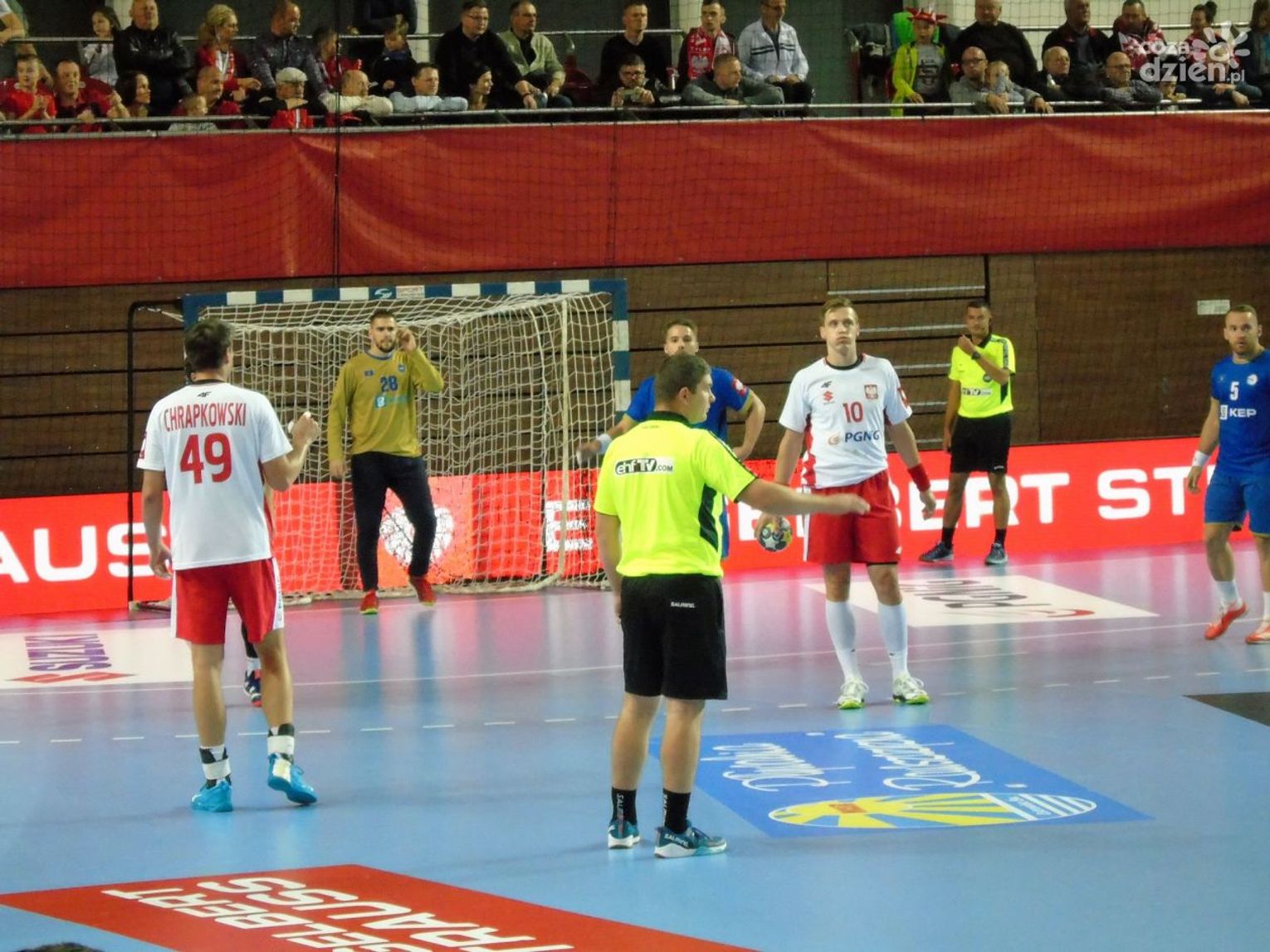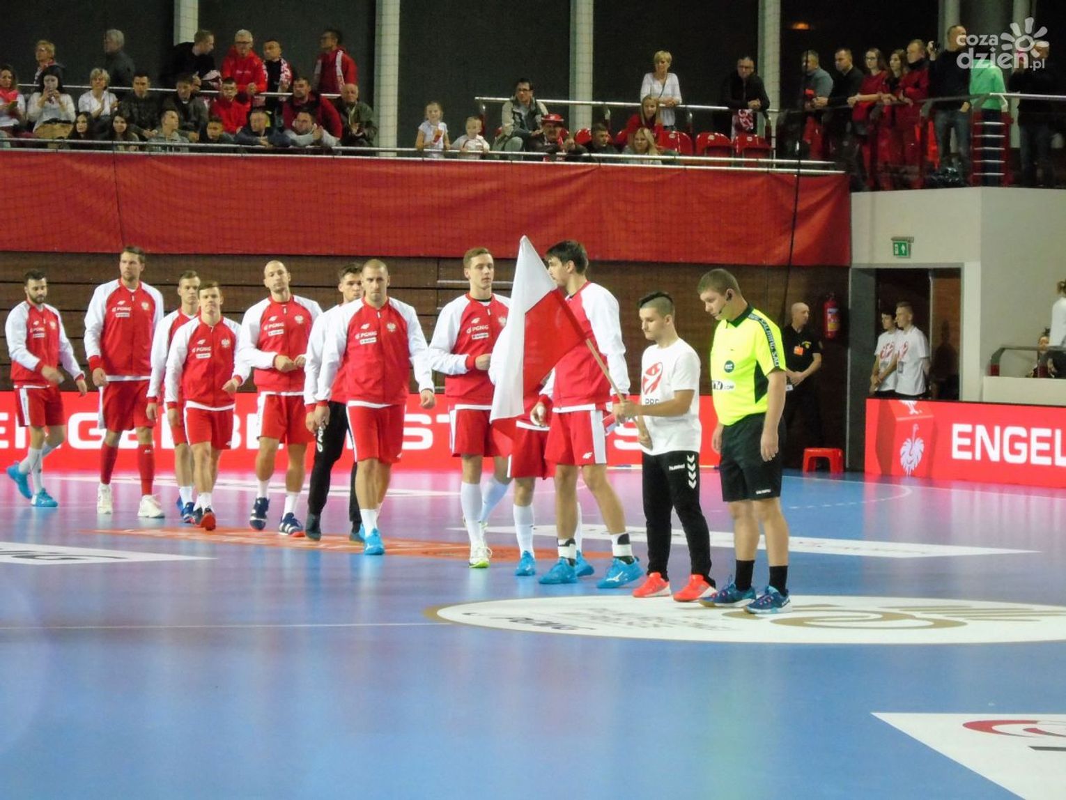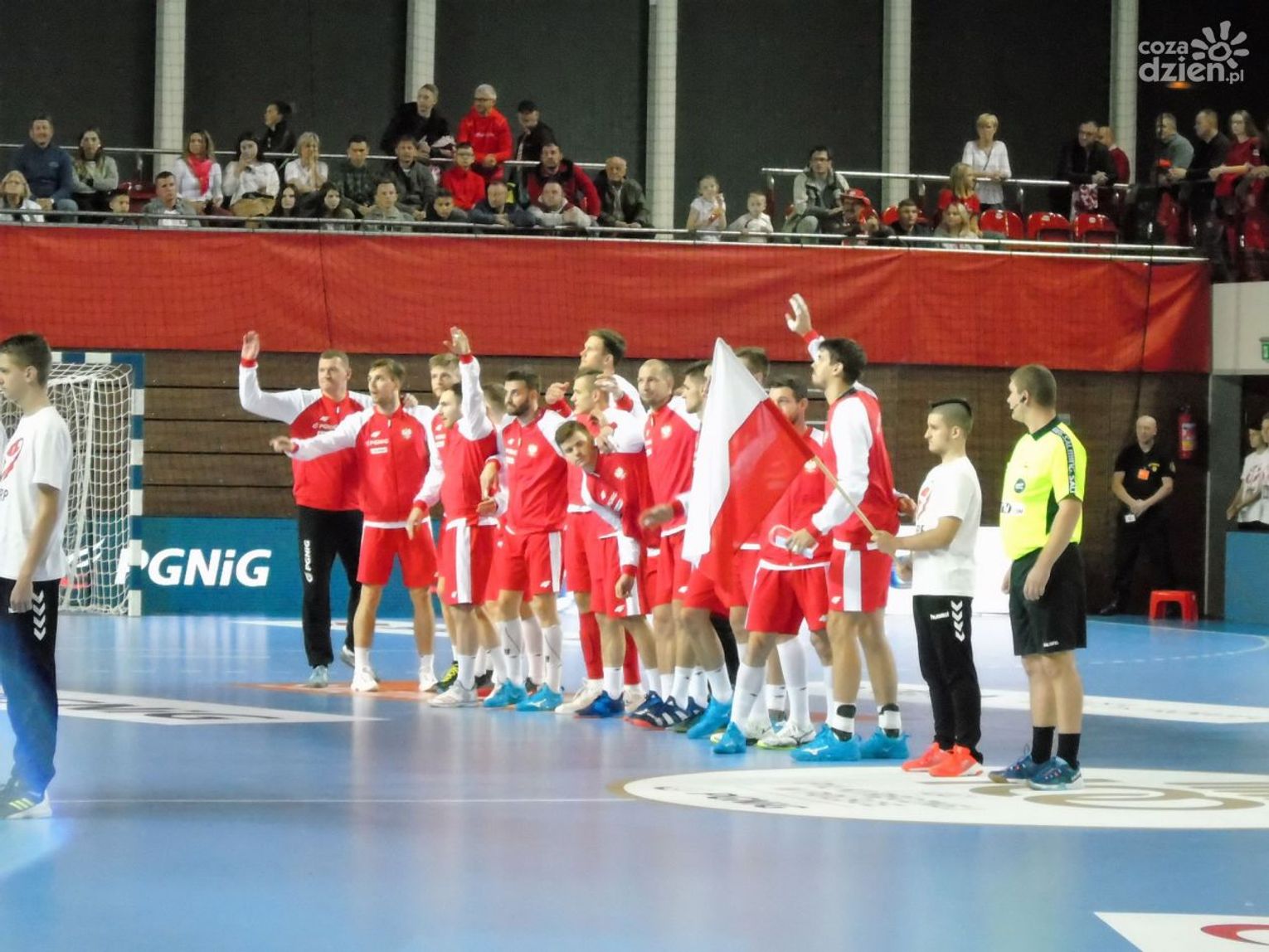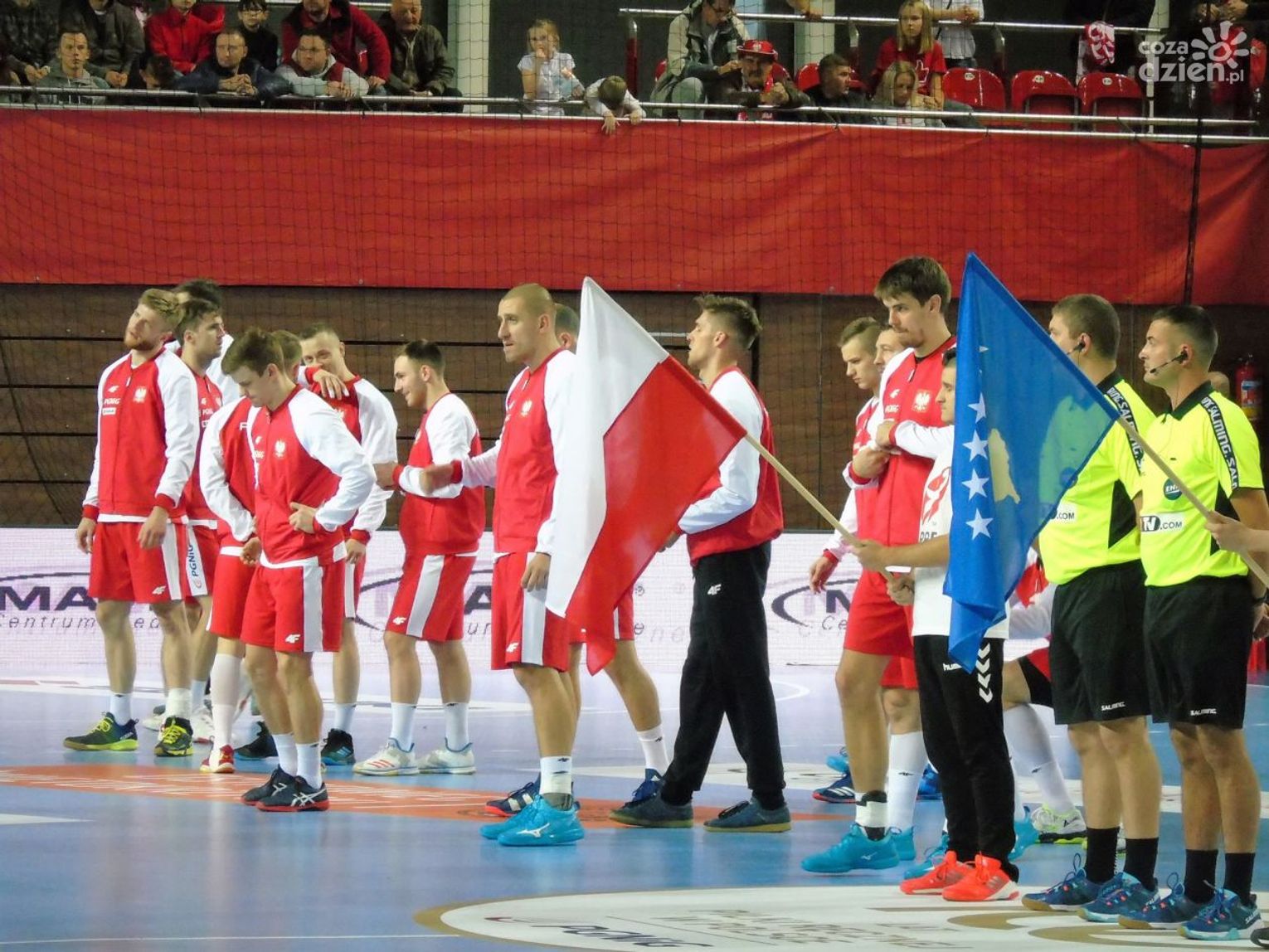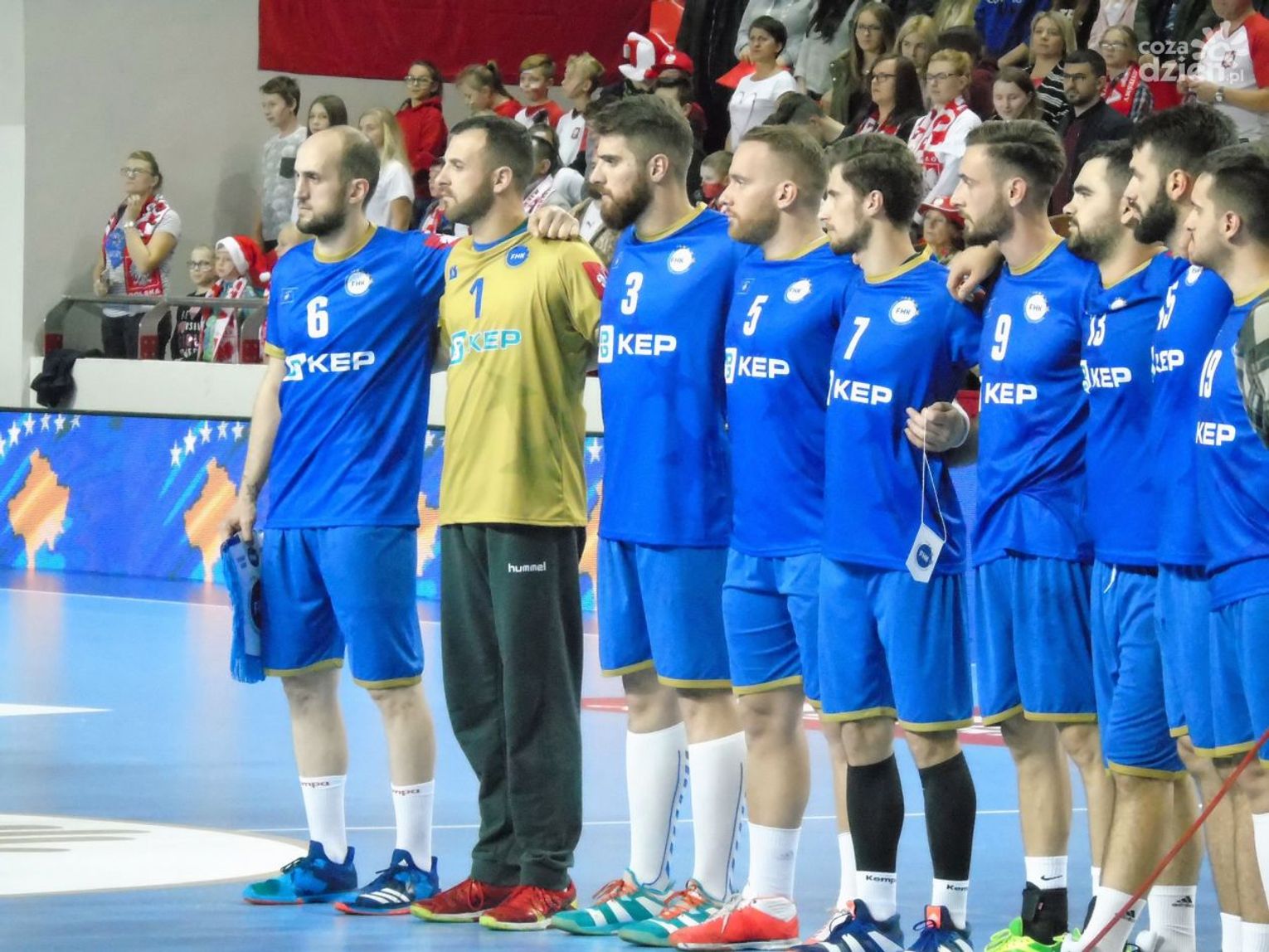 Na drugą połowę trener Piotr Przybecki zdecydował się na kilka zmian. W bramce mogliśmy zobaczyć wychowanka KSSPR Końskie Mateusza Korneckiego, więcej grali również Kamil Syprzak, Michał Daszek i Maciej Gębala. Polacy powoli, ale systematycznie powiększali przewagę, a na zapełnionych w całości trybunach panowała radosna, rodzinna atmosfera. Widownia ożywiała się, albo przy skutecznych akcjach Polaków, albo wtedy, kiedy spiker zarządzał wspólną zabawę. Była meksykańska fala, wspólne przyśpiewki, machanie szalikami, czy trzepotanie białymi i czerwonymi planszami. Kibice bawili się świetnie, a na parkiecie w 46 minucie Polacy prowadzili już dwudziestoma bramkami (28:8). W końcówce niewiele się zmieniło, Kosowianie nie ustawili poprzeczki zbyt wysoko i ostatecznie zostali rozgromieni 37:13. Najlepszym zawodnikiem meczu został wybrany rozgrywający naszej reprezentacji Paweł Paczkowski.
