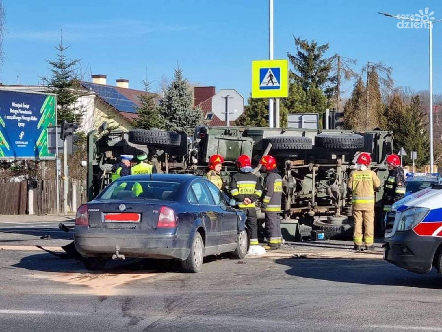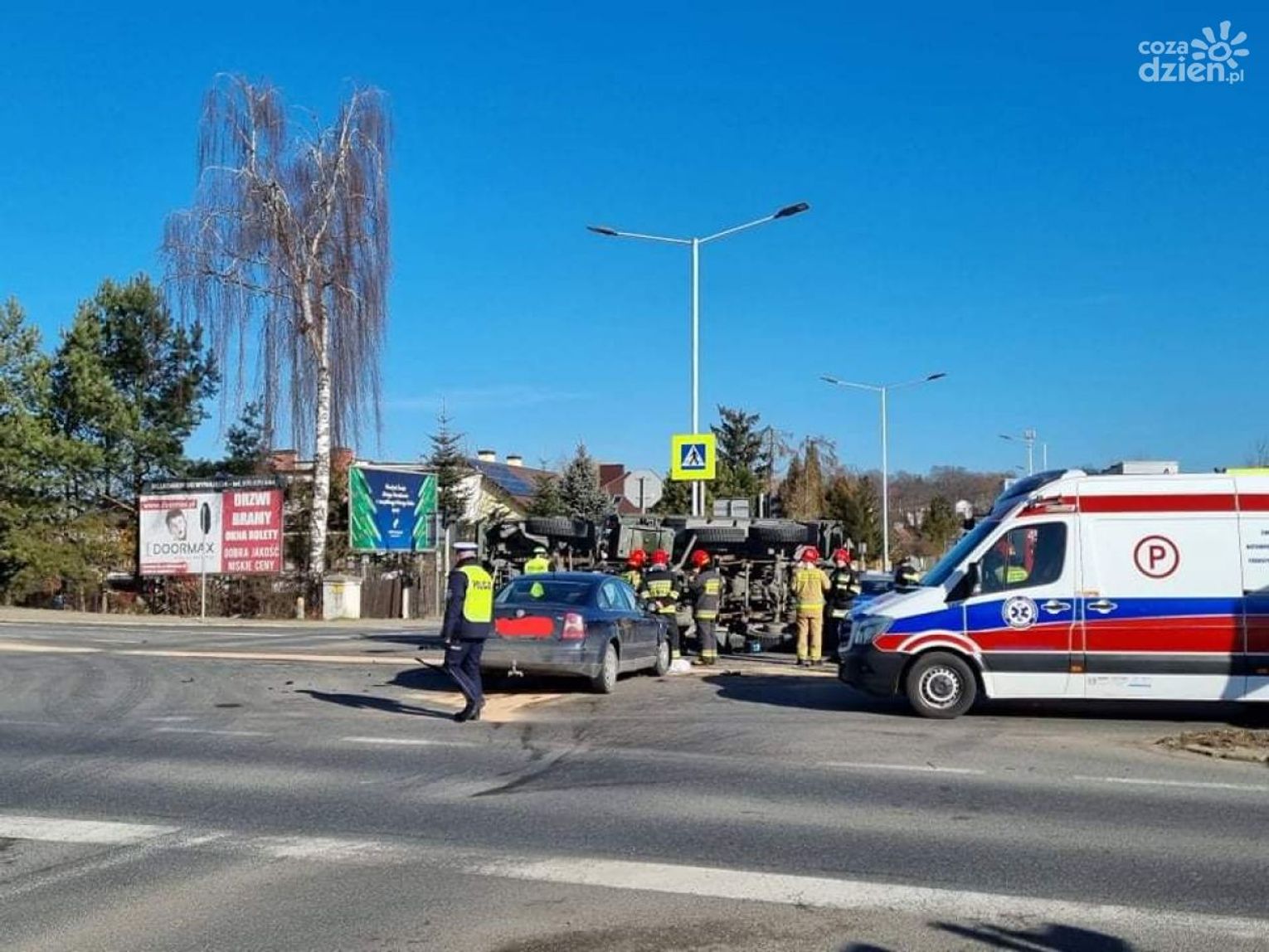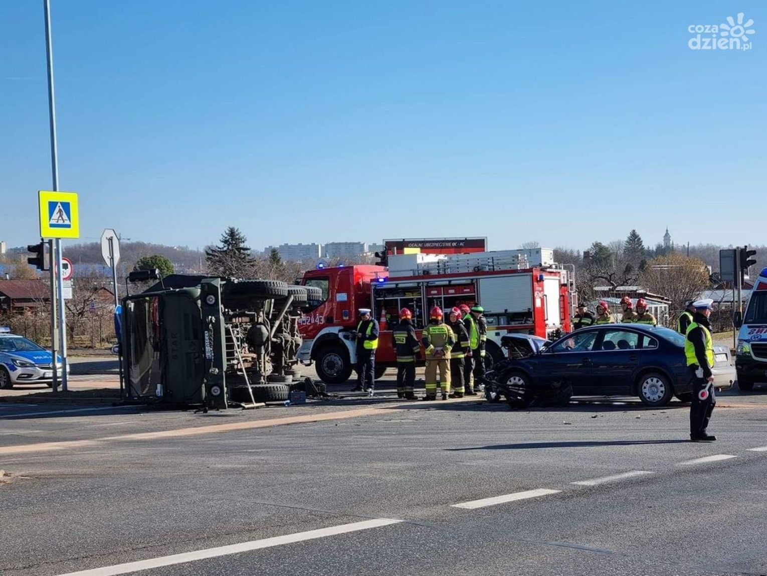 Kierowcy przejeżdżający przez drogę krajową nr 9 w Ostrowcu Świętokrzyskim na skrzyżowaniu ulicy Żeromskiego i Zagłoby (obwodnica) muszą liczyć się z utrudnieniami. Doszło tam do poważnego wypadku samochodu osobowego marki Volkswagen z wojskowym samochodem ciężarowym.