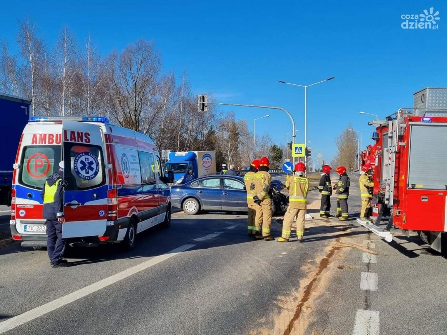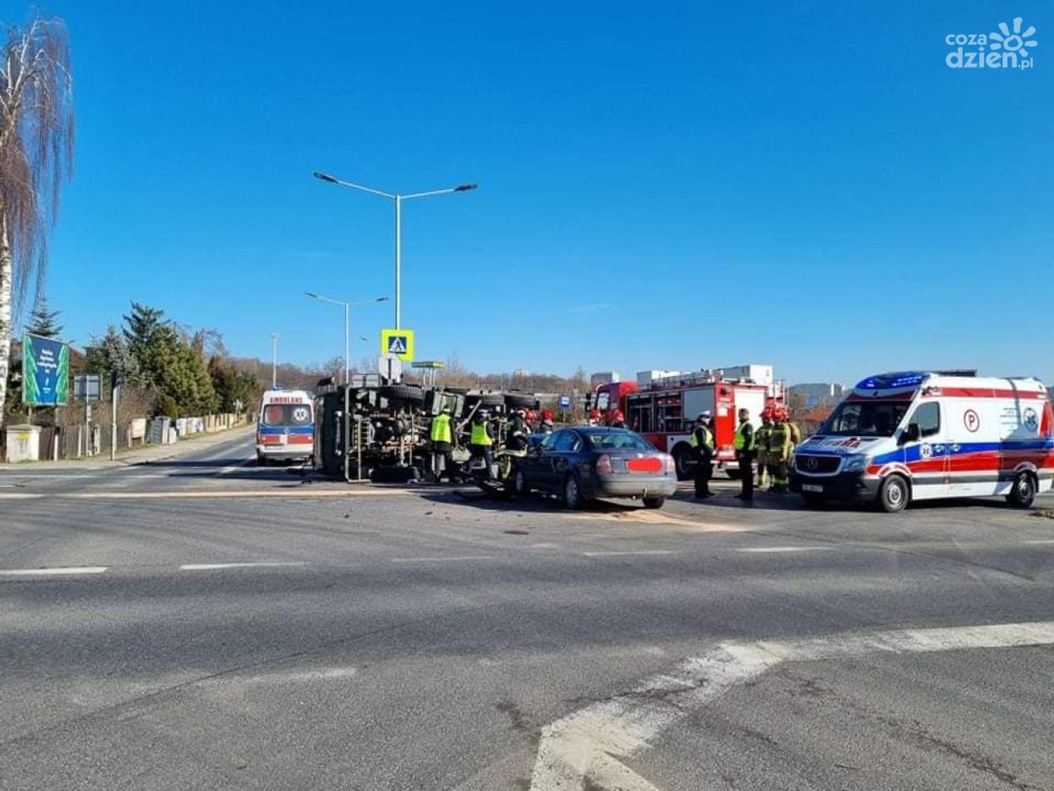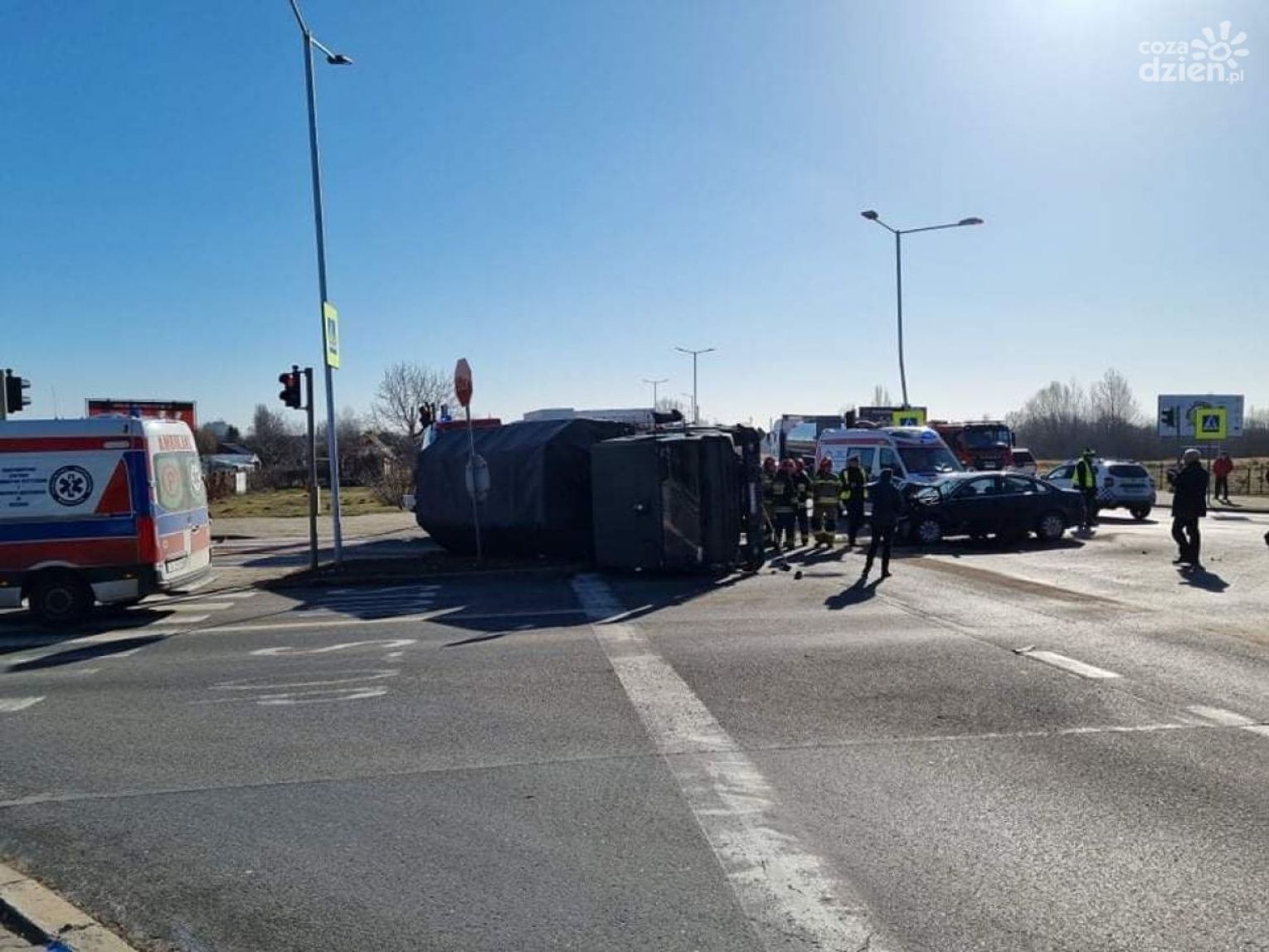 Kierowcy przejeżdżający przez drogę krajową nr 9 w Ostrowcu Świętokrzyskim na skrzyżowaniu ulicy Żeromskiego i Zagłoby (obwodnica) muszą liczyć się z utrudnieniami. Doszło tam do poważnego wypadku samochodu osobowego marki Volkswagen z wojskowym samochodem ciężarowym.