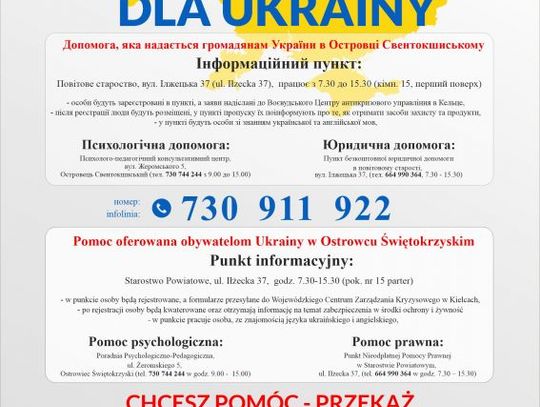 - Pomoc dla uchodźców z Ukrainy zadeklarował też wojewoda świętokrzyski i ma to być już bardziej uniwersalne wsparcie.