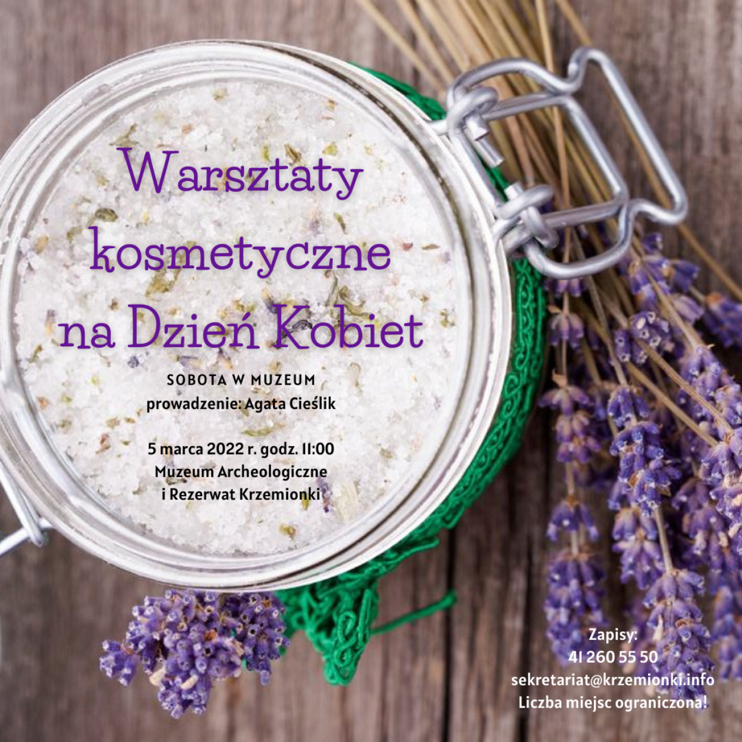 Kosmetyki z wykorzystaniem naturalnych składników oraz pogadanki o właściwościach pielęgnacyjnych ziół, olei, olejków eterycznych i innych półproduktów kosmetycznych i wreszcie poznawanie zapachów naturalnych i syntetycznych. To wszystko w ramach sobotnich warsztatów proponuje Muzeum Archeologiczne i Rezerwat Krzemionki. Temat nieprzypadkowy, bo związany ze zbliżającym się Świętem Pań. Podczas warsztatów będzie można dowiedzieć się jakie kosmetyki pielęgnacyjne można wykonać samodzielnie w domu z ogólnodostępnych składników, nawet tych dostępnych w kuchni. Będzie też laboratorium , czyli samodzielne wykonanie relaksującej soli do kąpieli lub pielęgnacyjnego peeling do ciała, które będzie można zabrać do domu.