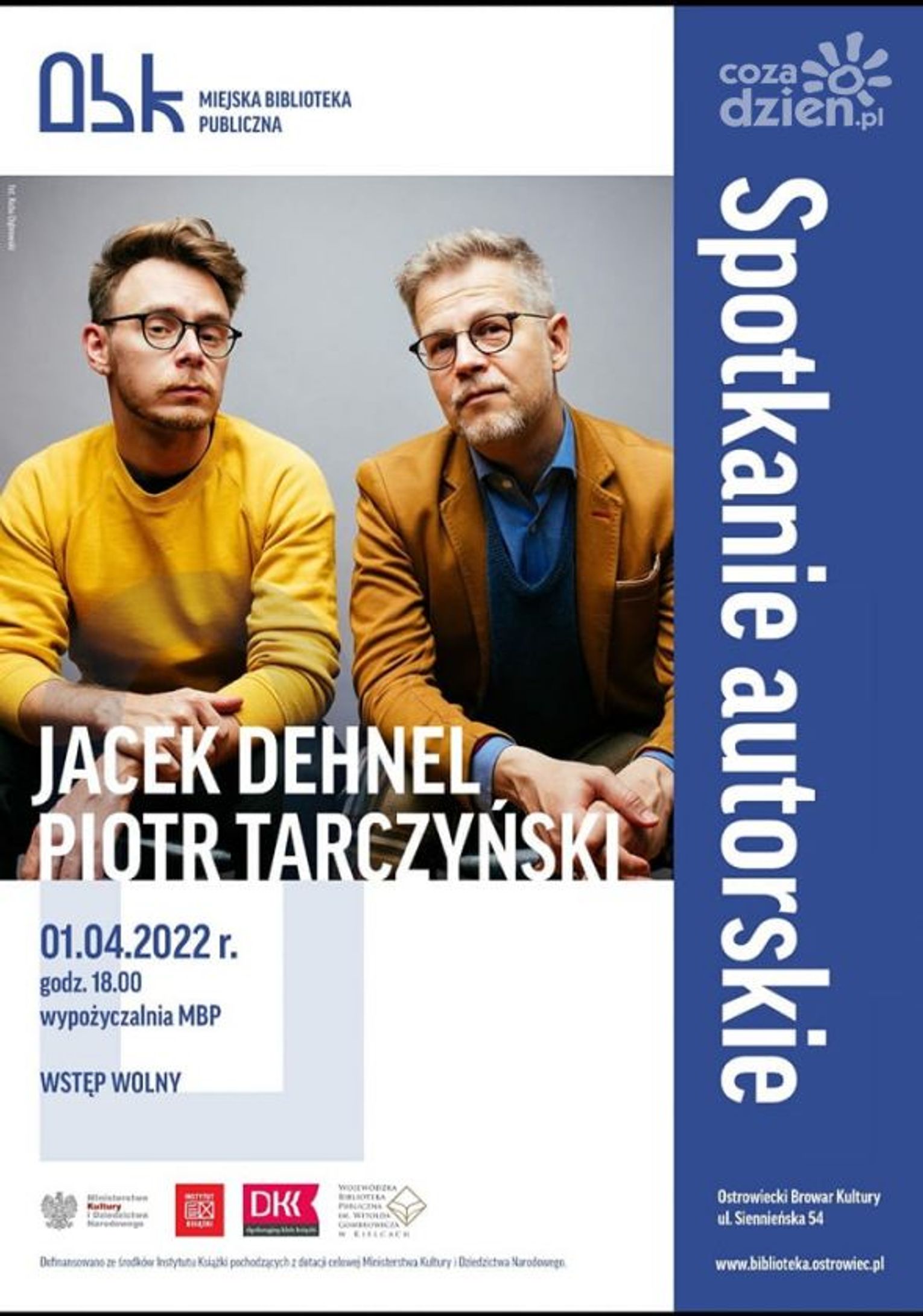 Jacek Dehnel i Piotr Tarczyński od 2015 roku tworzą cykl powieści kryminalnych pod wspólnym pseudonimem „Maryla Szymiczkowa”. Akcja ich powieści osadzona jest w realiach Krakowa z przełomu XIX i XX wieku. Spotkanie autorskie rozpocznie się o godzinie 18:00 w wypożyczalni MBP w OBK.
