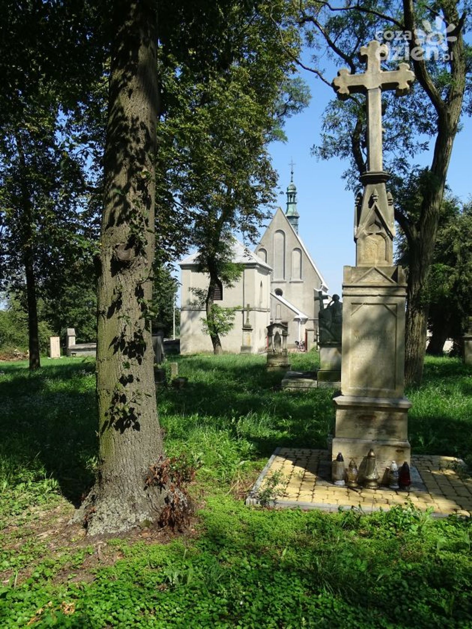 Do cmentarza kościelnego przylega od zachodu stary XIX-wieczny cmentarz grzebalny. Był on czynny do 1900 r. Ks. Jan Wiśniewski pisał o nim: „Snem cichym uśpieni, matką ziemią spowici spoczywają tu obok siebie po troskach ziemskich i pracy synowie i córy jednej wspólnej Matki… a snu twardego nikt im nie zakłóci, chyba nowy przybysz… chyba pieść bolesna… chyba łkanie nowe…”. Na cmentarzu tym zachowała się część dawnych nagrobków, głównie z piaskowca, które pomimo upływu czasu zachwycają swą formą i kunsztem wykonania. Szczególnie wyróżnia się pomnik Edwarda Pyzewskiego w kształcie trumny.