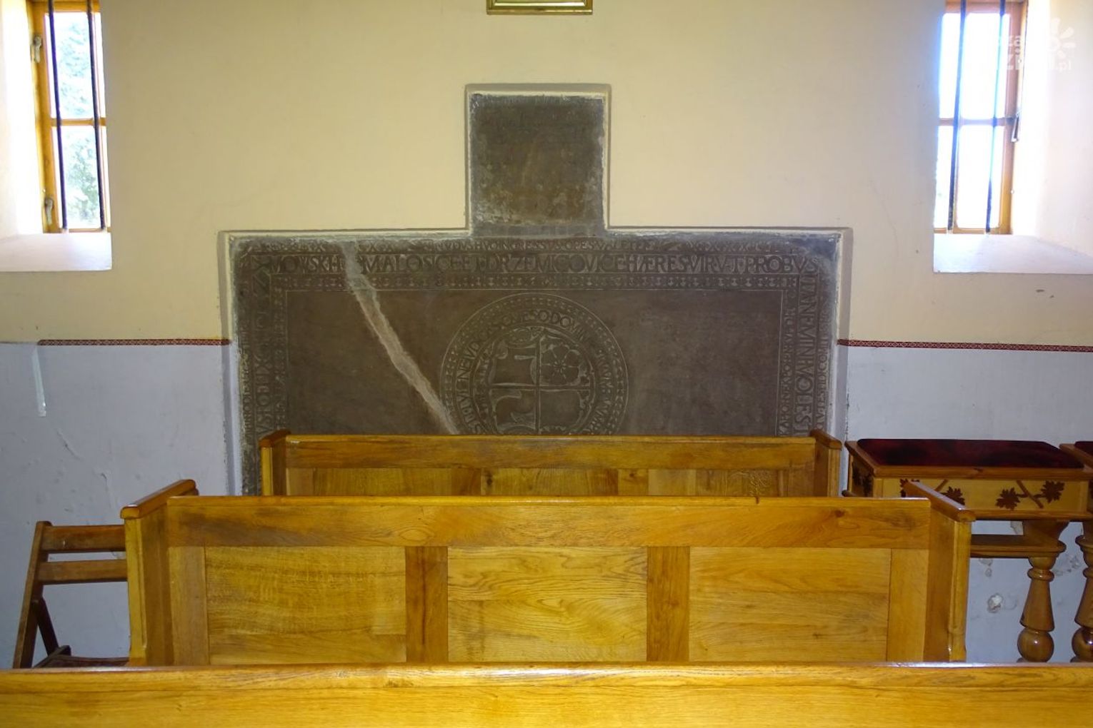 Niezmiernie ciekawy jest pomnik Feliksa Chocimowskiego w formie przyściennej tablicy umieszczony w kruchcie; taki pomnik miała w kościele niegdyś także jego żona, Felicja.