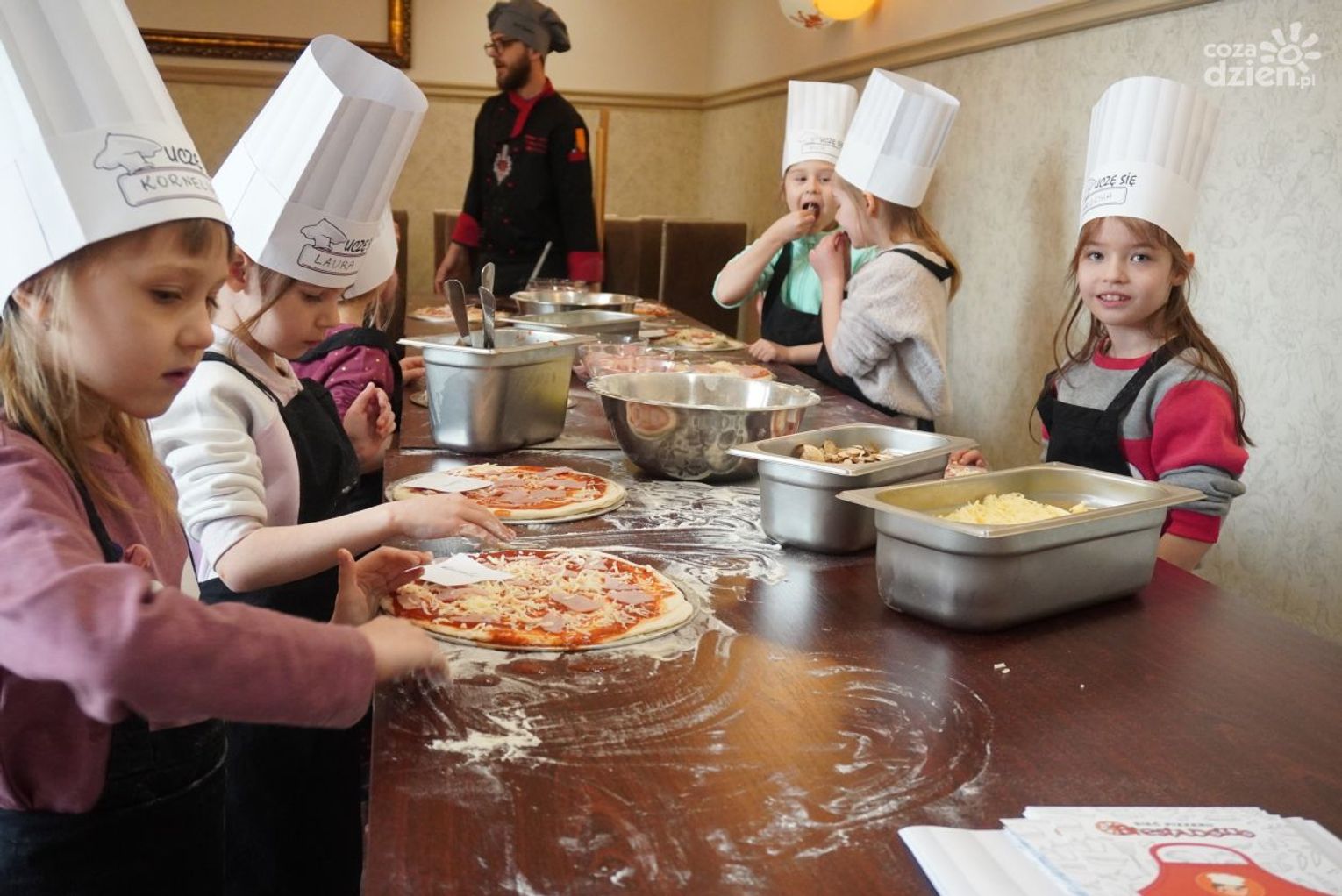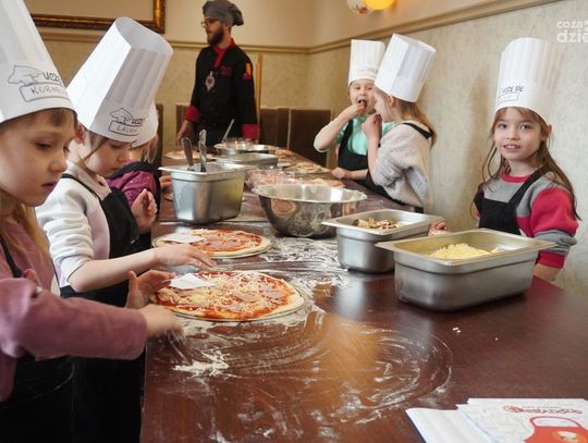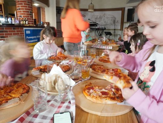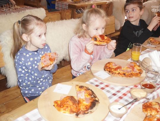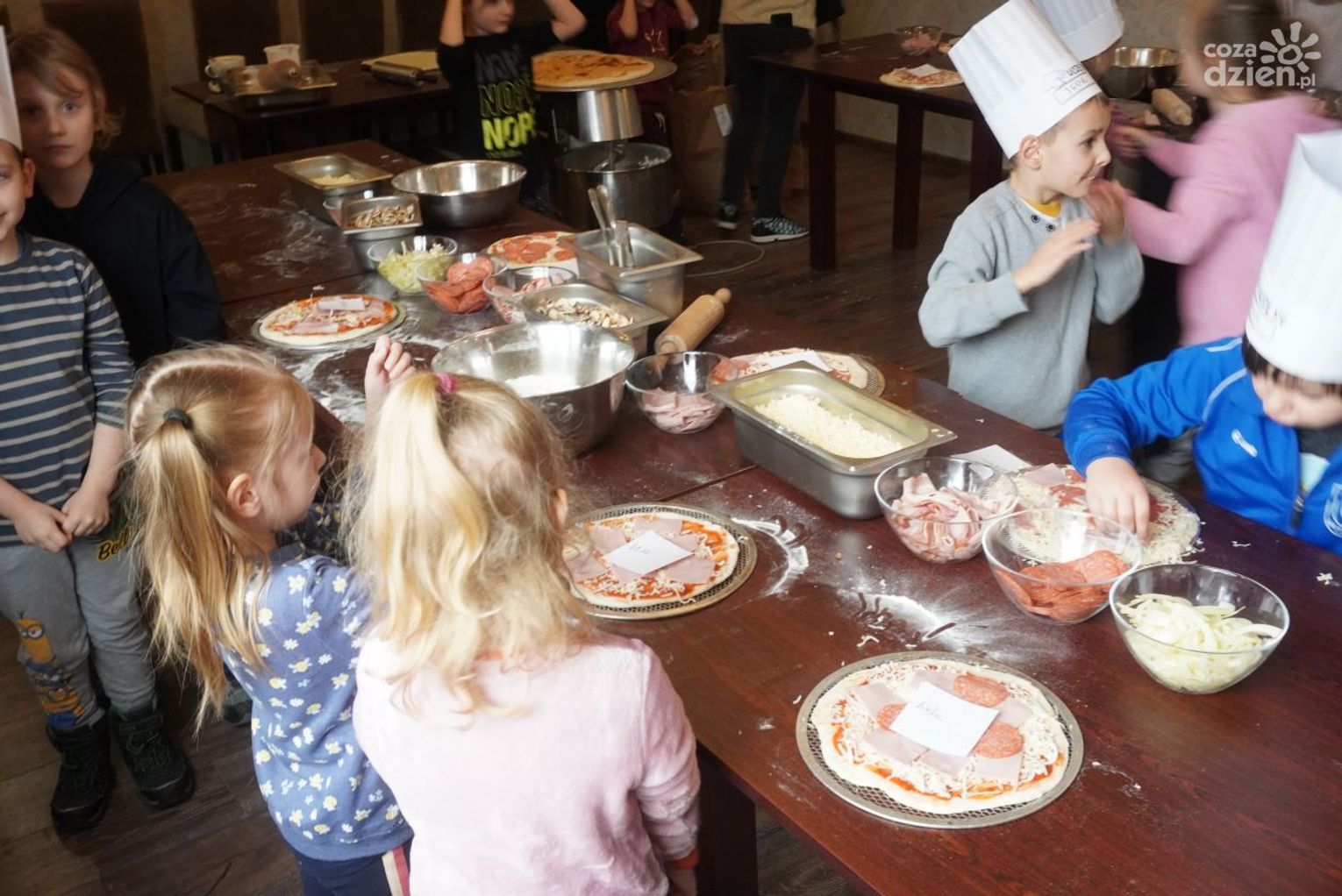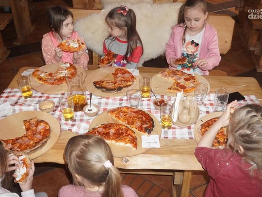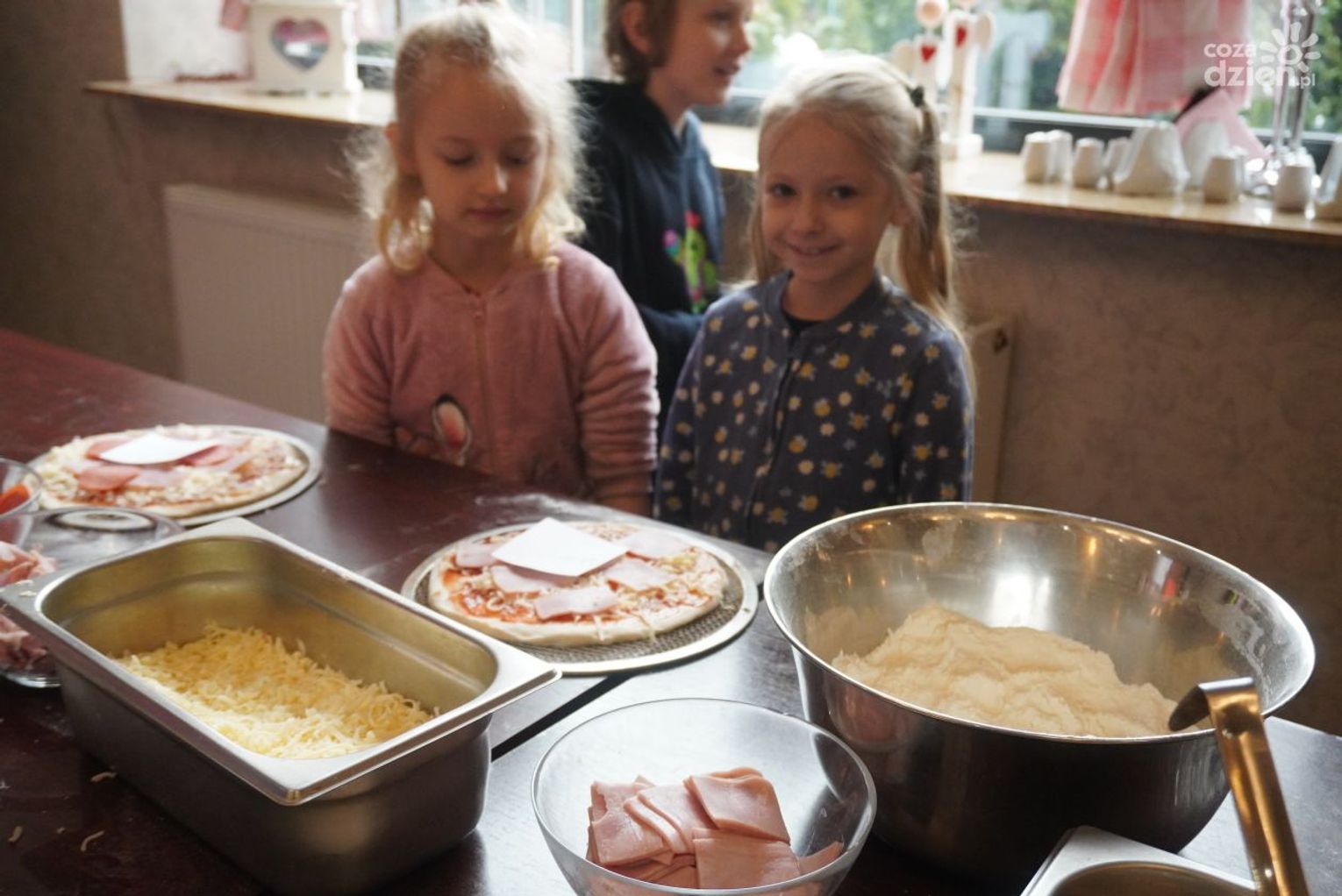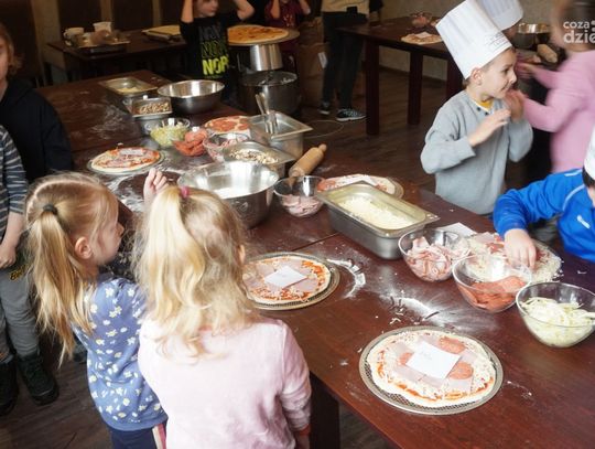 6 i 7 latkowie własnoręcznie przygotowywali swoją autorską pizzę, którą ostatecznie skonsumowali. Cała grupa liczyła 16 osób. Zapytani o ich ulubione składni w zdecydowanej większości można było usłyszeć szynka i salami. Najtrudniejszym zadaniem było rozciągnięcie ciasta na siatce i jego ukształtowanie. Pizze nie tylko przyjmowały tradycyjną okrągłą formę, lecz na wielu stołach można było zobaczyć serca. Mali kucharze z niecierpliwością i ogromną ekscytacją czekali, aż ich dzieła się upieką i w końcu będą mogli osobiście przetestować swój produkt. Uśmiech na ich twarzach mówił sam za siebie, że zajęcia im przypadły do gustu. Być może w dorosłym życiu ktoś z nim powróci do kuchni.