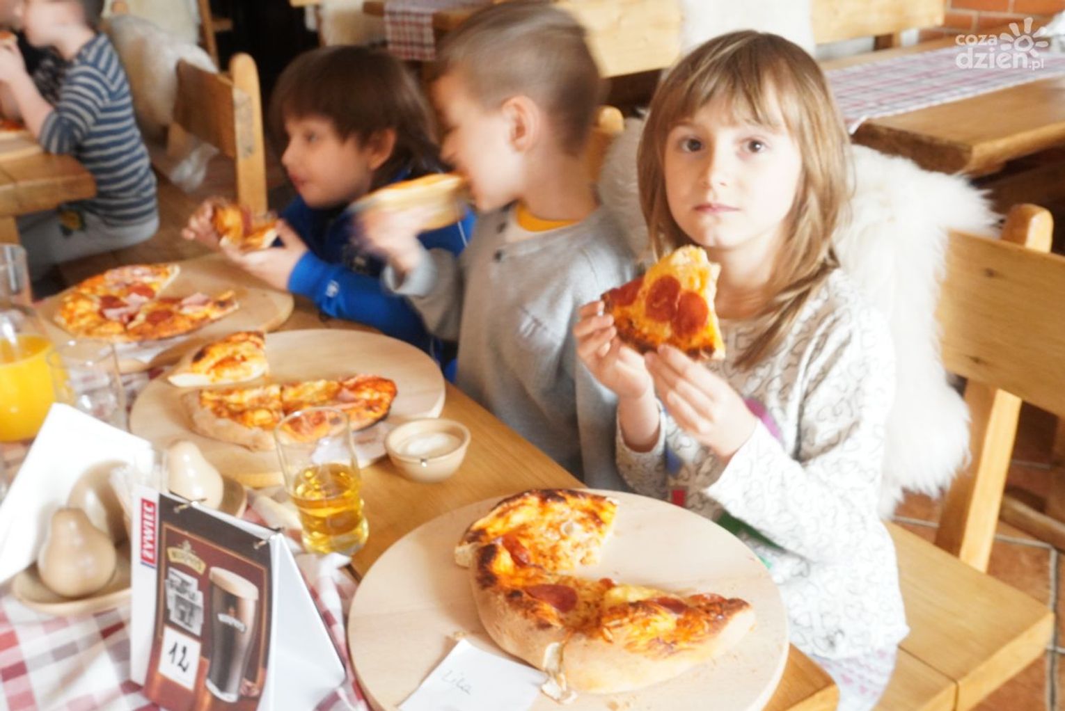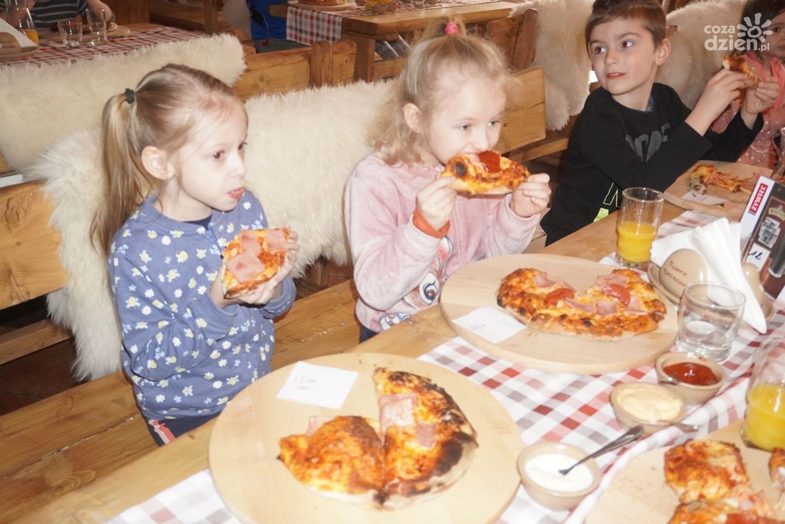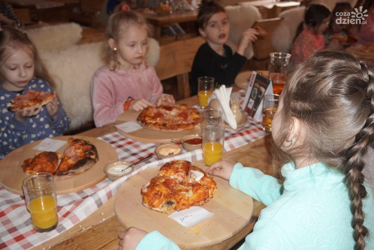 6 i 7 latkowie własnoręcznie przygotowywali swoją autorską pizzę, którą ostatecznie skonsumowali. Cała grupa liczyła 16 osób. Zapytani o ich ulubione składni w zdecydowanej większości można było usłyszeć szynka i salami. Najtrudniejszym zadaniem było rozciągnięcie ciasta na siatce i jego ukształtowanie. Pizze nie tylko przyjmowały tradycyjną okrągłą formę, lecz na wielu stołach można było zobaczyć serca. Mali kucharze z niecierpliwością i ogromną ekscytacją czekali, aż ich dzieła się upieką i w końcu będą mogli osobiście przetestować swój produkt. Uśmiech na ich twarzach mówił sam za siebie, że zajęcia im przypadły do gustu. Być może w dorosłym życiu ktoś z nim powróci do kuchni.