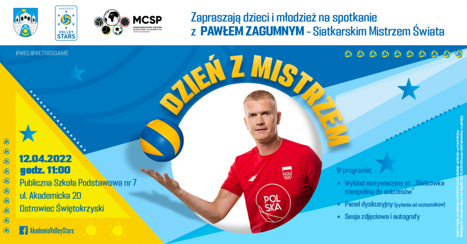 Będzie to już drugi taki projekt organizowany przez ostrowiecką akademię siatkówki, wcześniej, w 2019 roku gościem "Dnia z Mistrzem" była Małgorzata Glinka. Teraz młodzież z Ostrowca będzie mogła porozmawiać z wielokrotnym reprezentantem Polski, Mistrzem Świata, Mistrzem Europy, a także zwycięzcą Ligi Światowej Pawłem Zagumnym.