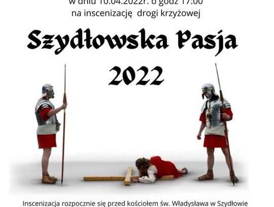 Stowarzyszenie rekonstrukcji historycznych Avito Vivit Honore wspólnie z MGCK w Szydłowie oraz miejscową Parafią zapraszają na inscenizacje drogi krzyżowej Szydłowska Pasja 10 kwietnia o godz. 17.00