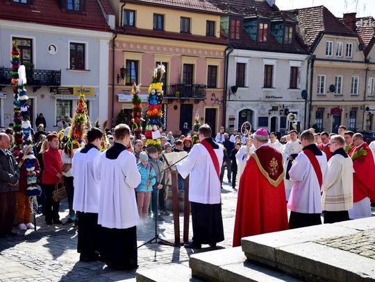 Tam wierni zgromadzili się tradycyjnie na starówce pod figurą Matki Bożej, gdzie biskup sandomierski Krzysztof Nitkiewicz dokonał poświęcenia przyniesionych palm. W uroczystości udział wzięło również Bractwo Rycerskie. Następnie odbyła się Msza Święta w sandomierskiej katedrze. W homilii bp Nitkiewicz mówił: