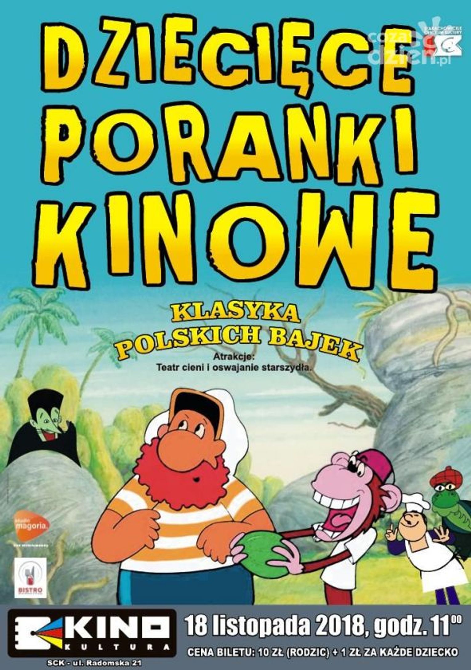 Start - godzina 11.00, bilety w cenie 10zł (rodzic/opiekun) + 1zł za każde dziecko do nabycia w kasie Kina Kultura oraz na www.sck.org.pl.