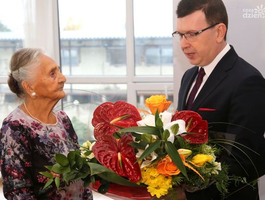 Z okazji tak pięknego jubileuszu przyjęła życzenia kolejnych stu lat, kwiaty i upominku od przedstawicieli władz miasta i województwa.