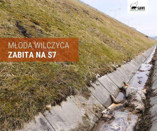 - Jakiś czas temu znaleźliśmy w rowie martwą wilczycę, przy niedawno wybudowanej trasie S7. Z oględzin ciała zwierzęcia wysnuliśmy wniosek, że została ona potrącona przez samochód. Wiemy, że w miejscu, w którym odkryliśmy zwierzę, przez szosę przechodzi wiele zwierząt, w związku z czym dochodzi do wypadków z ich udziałem. Ślady na miejscu zdarzenia wskazują, że wilczyca próbowała przejść przez drogę S7, została uderzona przez pojazd, następnie spadła z nasypu do rowu – relacjonuje JoannaToczydłowska.