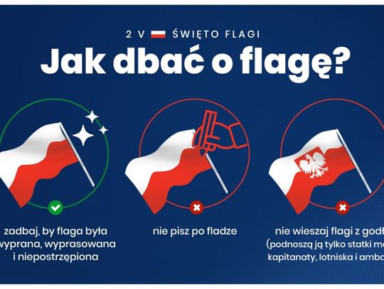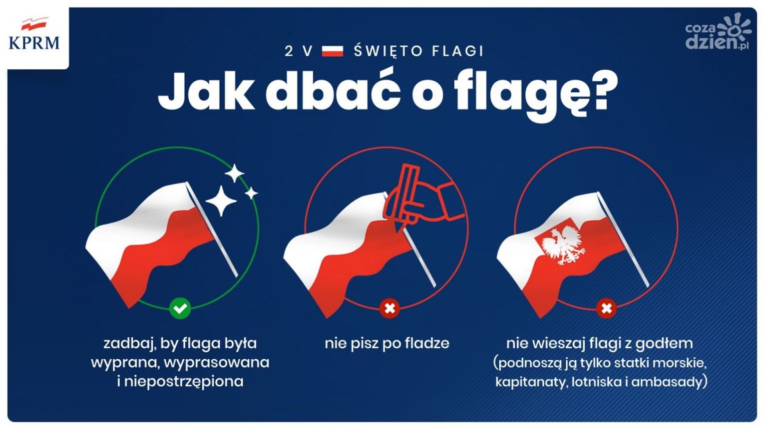 Jak instruuje Kancelaria Premiera w mediach społecznościowych, powinniśmy zadbać by flaga była wyprana i wyprasowana a także niepostrzępiona i bez żadnych napisów. I uwaga dla wszystkich, którzy wieszają flagi z Orłem. Ten rodzaj flagi zarezerwowany jest tylko dla statków morskich i ambasady, a także lotnisk i kapitana portu. Godło na fladze powinno znajdować się na białym prostokącie.