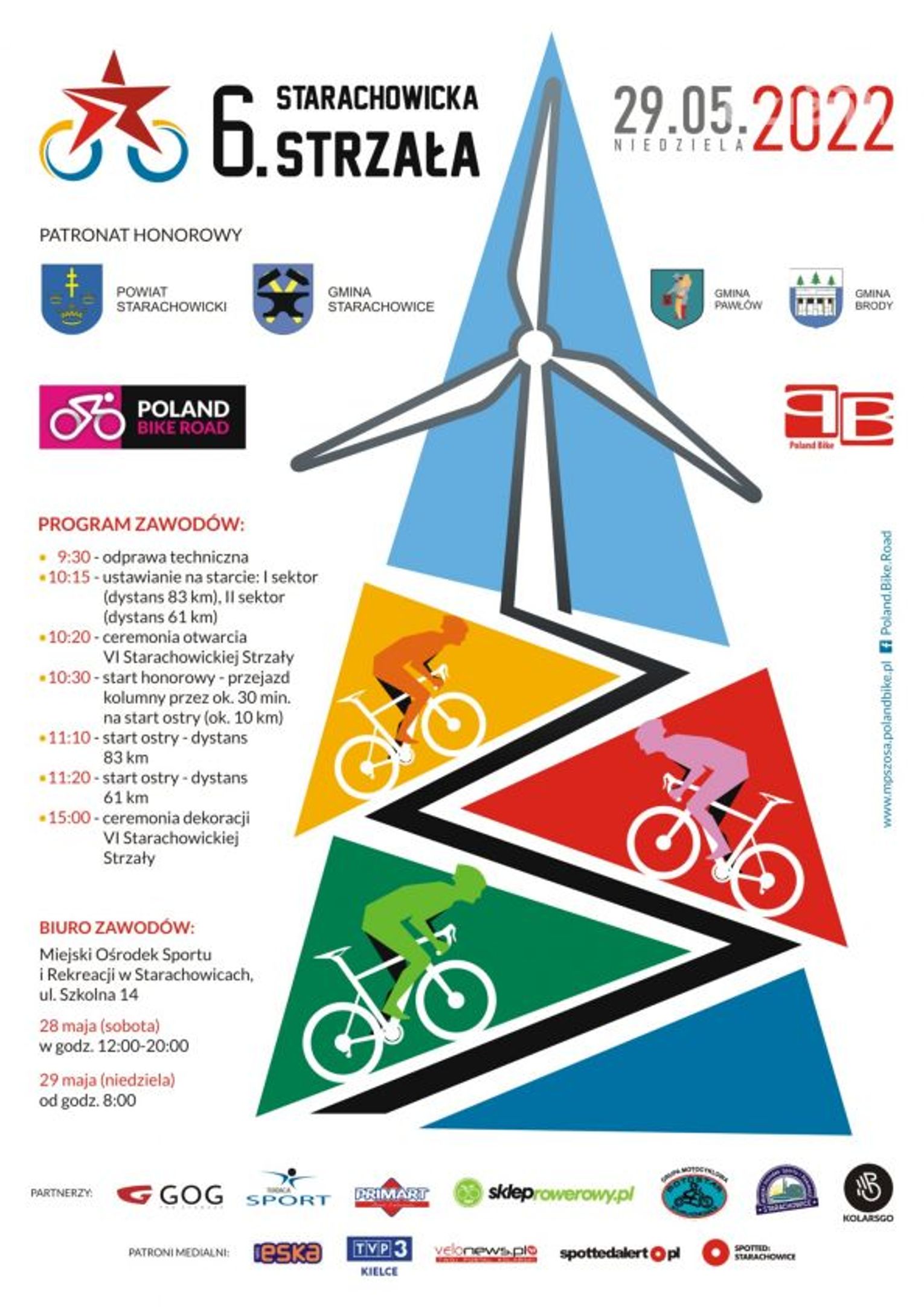 VI Starachowicka Strzała organizowana jest przy ścisłej współpracy z Powiatem Starachowickim, Urzędem Miasta Starachowice, Gminą Pawłów, Gminą Brody, Miejskim Ośrodkiem Sportu i Rekreacji w Starachowicach oraz Grupą Motocyklową MotoStar Starachowice. Patronat honorowy sprawują Starosta Starachowicki, Prezydent Miasta Starachowice, Wójt Gminy Pawłów i Wójt Gminy Brody. Zapraszamy do Starachowic!