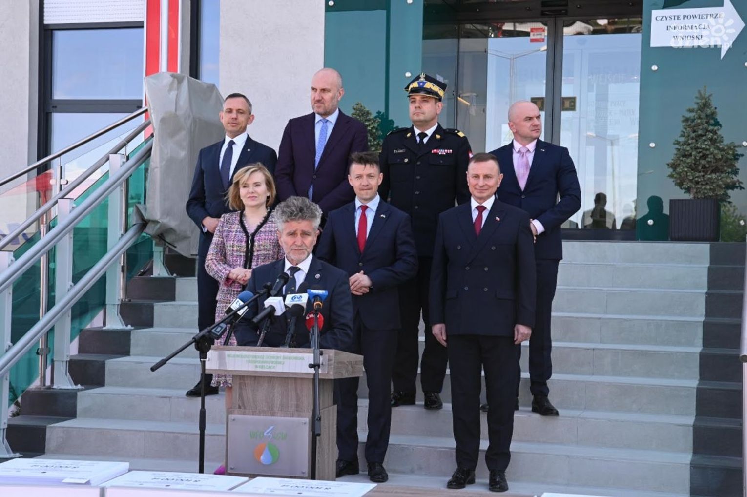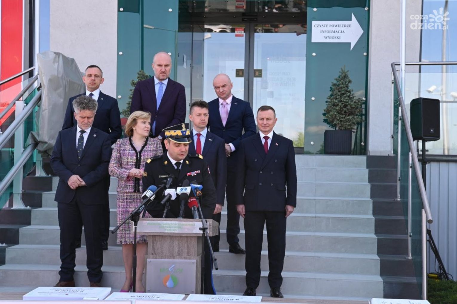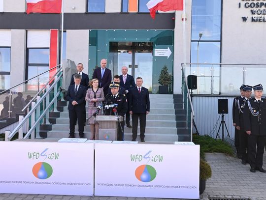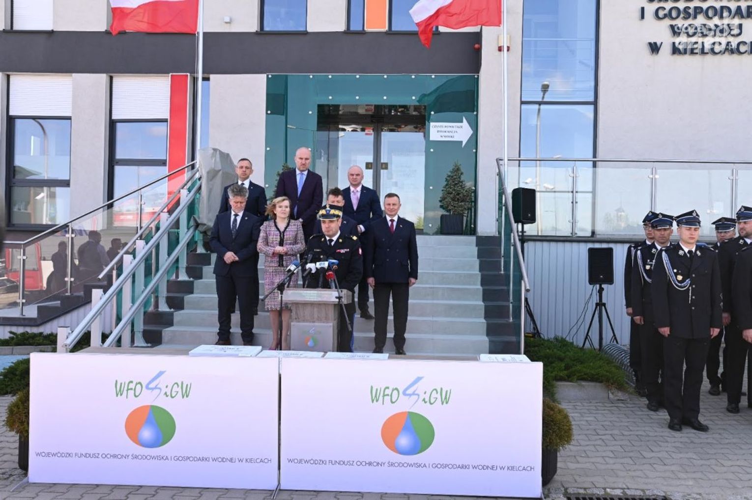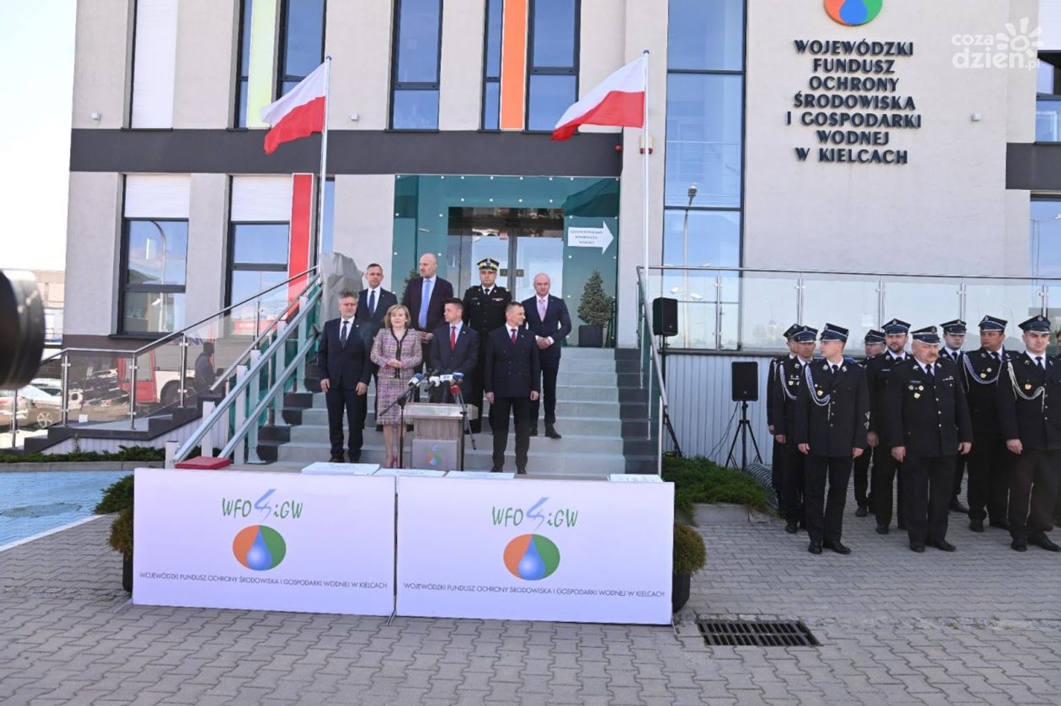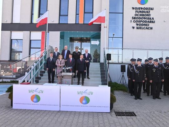 W uroczystości udział wzięli: minister Anna Krupka, senator Krzysztof Słoń, poseł Bartłomiej Dorywalski, prezes WFOŚ Ryszard Gliwiński wraz z zastępcą Grzegorzem Socha, a także wicewojewoda świętokrzyski Rafał Nowak i Komendant Wojewódzki PSP nadbrygadier Krzysztof Ciosek.