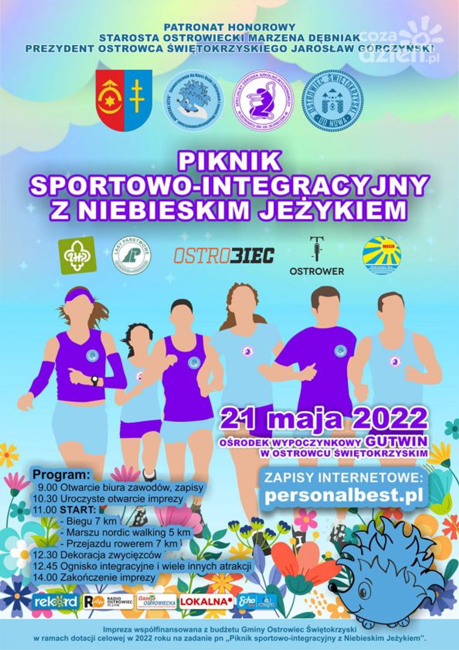 Partnerem wydarzenia są: Ostrowieckie Stowarzyszenie Biegaczy „OstroBiec” oraz Stowarzyszenie „Ostrower”. Patronat honorowy nad imprezą objęli: Starosta Ostrowiecki Marzena Dębniak oraz Prezydent Miasta Ostrowca Świętokrzyskiego Jarosław Górczyński. Wydarzenie jest współfinansowane z budżetu Gminy Ostrowiec Świętokrzyski w ramach dotacji celowej w 2022 roku na zadanie pn „Piknik Sportowo - Integracyjny z Niebieskim Jeżykiem”. Jednym z patronów medialnych wydarzenia jest Świętokrzyska Grupa mediowa w skład której wchodzą Radio Rekord Świętokrzyskie 89.6 FM oraz portal internetowy Swietokrzyskie.CoZaDzien.pl