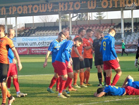 Sobotnie spotkanie III ligi piłki nożnej pomiędzy KSZO 1929 OSTROWIEC, a Podhalem Nowy Targ rozpoczęło się od uroczystego odegrania hymnu narodowego. Na boisku pierwsi do głosu doszli gospodarze. Pierwsza groźna akcja pojawiła się już w trzeciej minucie. Trzy minuty później było już 1:0 - Jedlikowski znalazł się w sytuacji sam na sam z bramkarzem gości Mateuszem Szukałą i płaskim strzałem pomiędzy nogami goalkeepera Podhala umieścił piłkę w siatce. Po stracie bramki nowotarżanie przejęli inicjatywę, efektem tego była bramka zdobyta w trzydziestej minucie przez Damiana Mrówkę. Napastnik gości wykorzystał dośrodkowania Marka Mizi i strzałem głową pokonał Zacharskiego. W 37 minucie groźnie z rzutu wolnego strzelał Fabian Burzyński, ale Szukała stanął na wysokości zadania i zdołał wybić piłkę. Drugą połowę lepiej zaczęli goście, choć gra toczyła się głównie w środkowej strefie boiska, ale to piłkarze Podhala łatwiej dochodzili do sytuacji strzeleckich, pomarańczowo-czarni ograniczyli się jedynie do szukania szansy w kontratakach. W 79 minucie na 1:2 strzelił Artur Pląskowski. Wtedy nie mający już nic do stracenia piłkarze Marcina Wróbla przejęli inicjatywę, akcje nie przynosiły jednak oczekiwanego skutku. Dopiero w 90 minucie, po zamieszaniu w polu karnym Podhala bramkę dającą wyrównanie zdobył Kamil Dziadowicz. Już wydawało się, że "Dziadek" swoją bramką uratował jeden punkt dla KSZO, niestety w drugiej minucie doliczonego czasu gry goście wykonywali rzut rożny. Dośrodkowanie Dawida Dynarka efektownym szczupakiem zamienił na bramkę niepilnowany Artur Pląskowski.