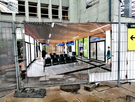 Wielkie zmiany czekają kielecki dworzec wewnątrz. Przestrzeń obsługi podróżnych zostanie skoncentrowana wokół przestronnego, bo posiadającego przeszło 500 m kw. holu, pełniącego jednocześnie funkcję poczekalni. Będzie on kwintesencją nowoczesnej aranżacji wnętrz - oparty na kontraście jasnych ścian i przeszklonych witryn z ciemną posadzką wykonaną z lastryko. W ten sposób zaprojektowanej aranżacji „ciepła” doda wykonany z dębowych listewek sufit podwieszany z liniowymi oprawami świetlnymi. Ciekawym detalem w przestrzeni nowego holu, nawiązującym do trendów ekologicznych, będzie „zielona ściana”, pokryta chrobotkiem reniferowym. Mech ten, co ciekawe, nie znalazł się w holu tylko jako zielony akcent, ale posiada również zdolności akustyczne, poprawiające wytłumienie wnętrz! Stąd zielona ściana będzie umieszczona na wejściu do specjalnie przygotowanego kącika zabaw dla dzieci. Najmłodsi oprócz stolików i krzesełek skorzystają w nim z trzech gier ściennych, a także z interaktywnej wieży z monitorem oraz pakietem gier edukacyjnych. Przyjaznego charakteru wnętrzu będzie dodawała wielkoformatowa, kolorowa fototapeta. To jednak nie wszystko. W nowym holu podróżni znajdą ergonomiczne ławki wyposażone w gniazdka oraz porty USB służące do ładowania urządzeń mobilnych, a także gabloty z rozkładem jazdy, elektroniczne tablice przyjazdów i odjazdów pociągów oraz zegary. Będzie on również klimatyzowany. W sąsiedztwie holu na parterze, oprócz pomieszczeń kas biletowych i lokali komercyjnych, zaprojektowano również toalety dla podróżnych. Dostaniemy się z niego również za pomocą schodów i wind do tunelu prowadzącego na perony. W centralnej części budynku i w jego skrzydłach na wyższych kondygnacjach zlokalizowano pomieszczenia biurowe, m.in. komendy regionalnej Straży Ochrony Kolei, spółek kolejowych i jednego z wydziałów Urzędu Miasta Kielce.