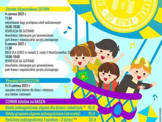 W dniach 4-5 czerwca 2022 na Pływalni Rawszczyzna wprowadzone specjalne ceny biletów dla dzieci i młodzieży oraz biletów rodzinnych.
