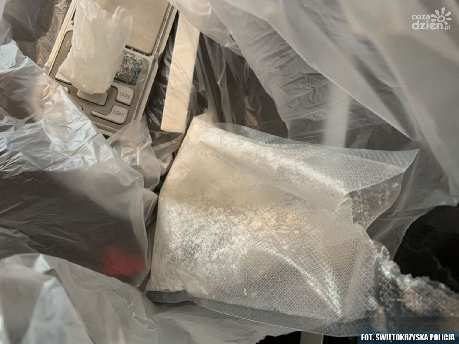"W obecności 35- latka kryminalni przeszukali pomieszczenia, natrafiając na spodziewane znalezisko. Mundurowi znaleźli woreczek, zawierający 93 gramy białego proszku. Wstępny test wykazał, że była to najprawdopodobniej amfetamina. Zabezpieczona substancja trafiła do laboratoryjnych badań", przekazał Karol Macek z KMP w Kielcach.
