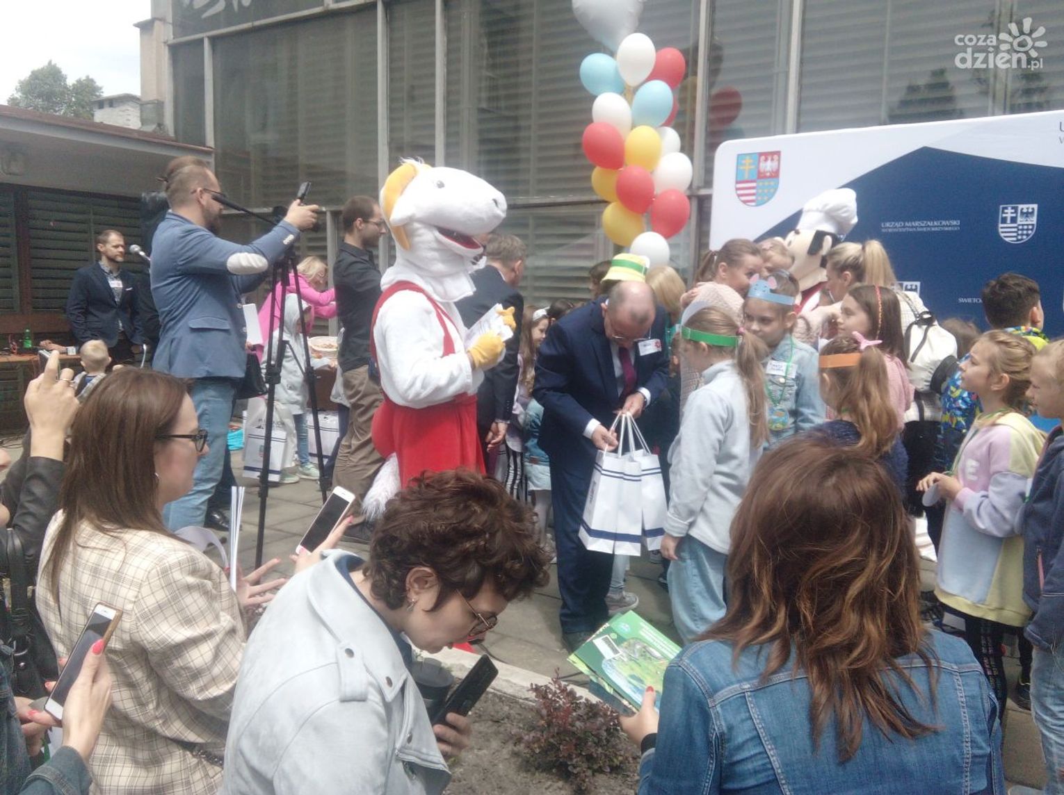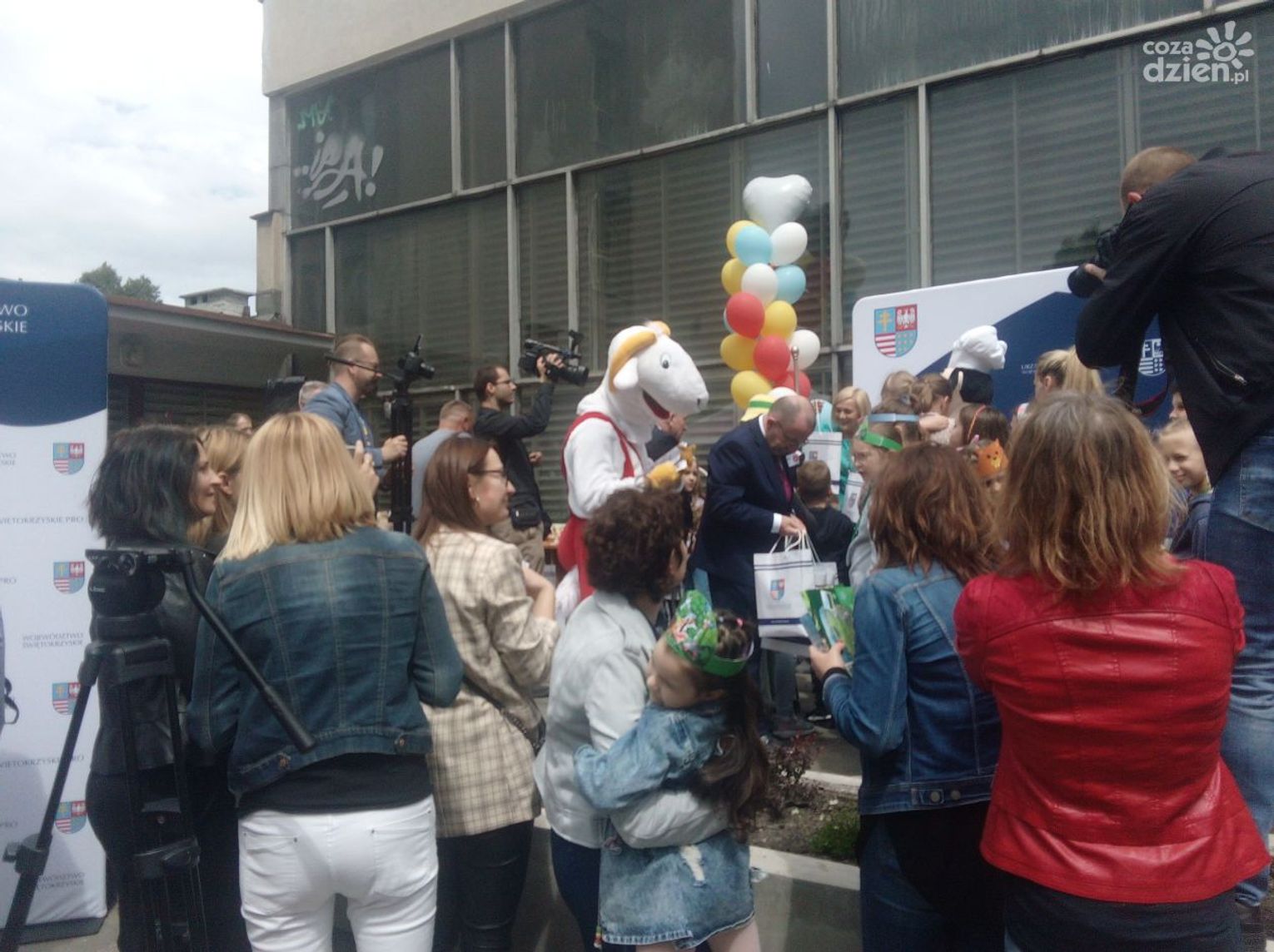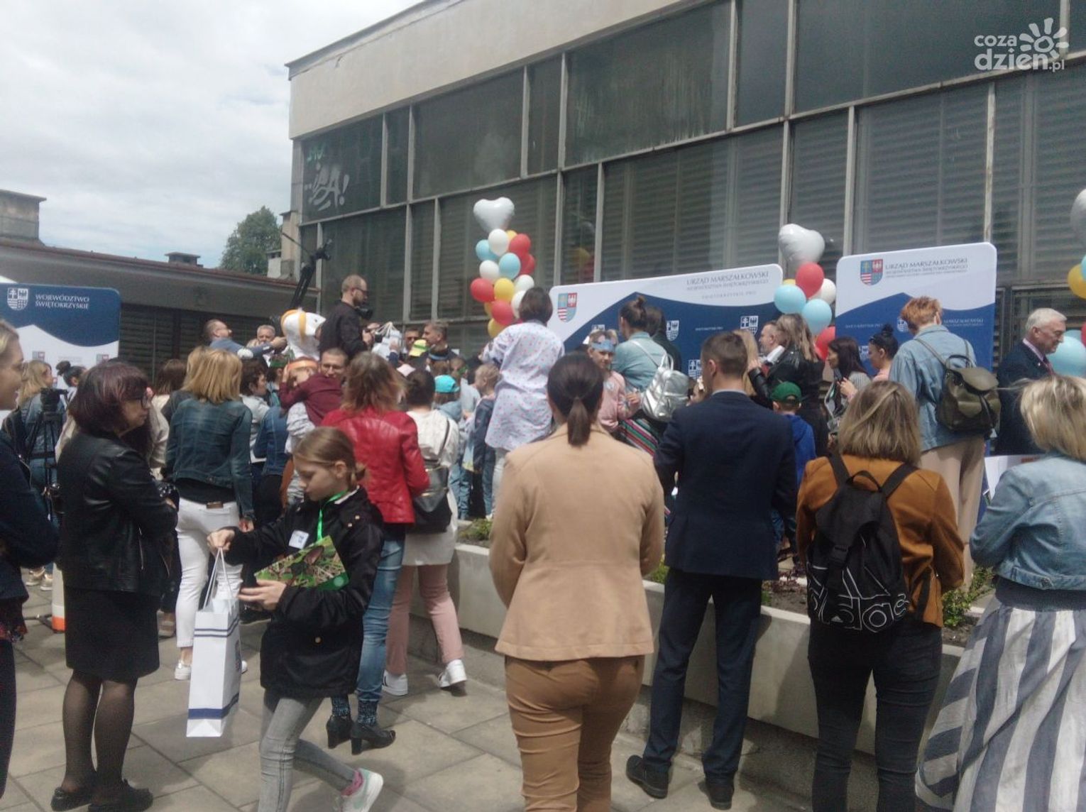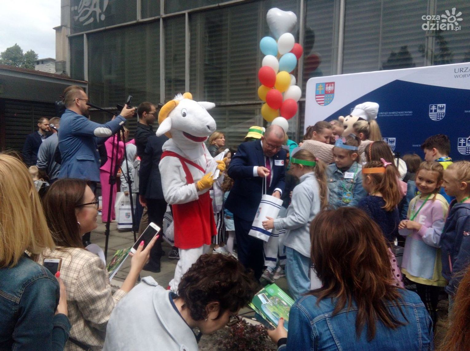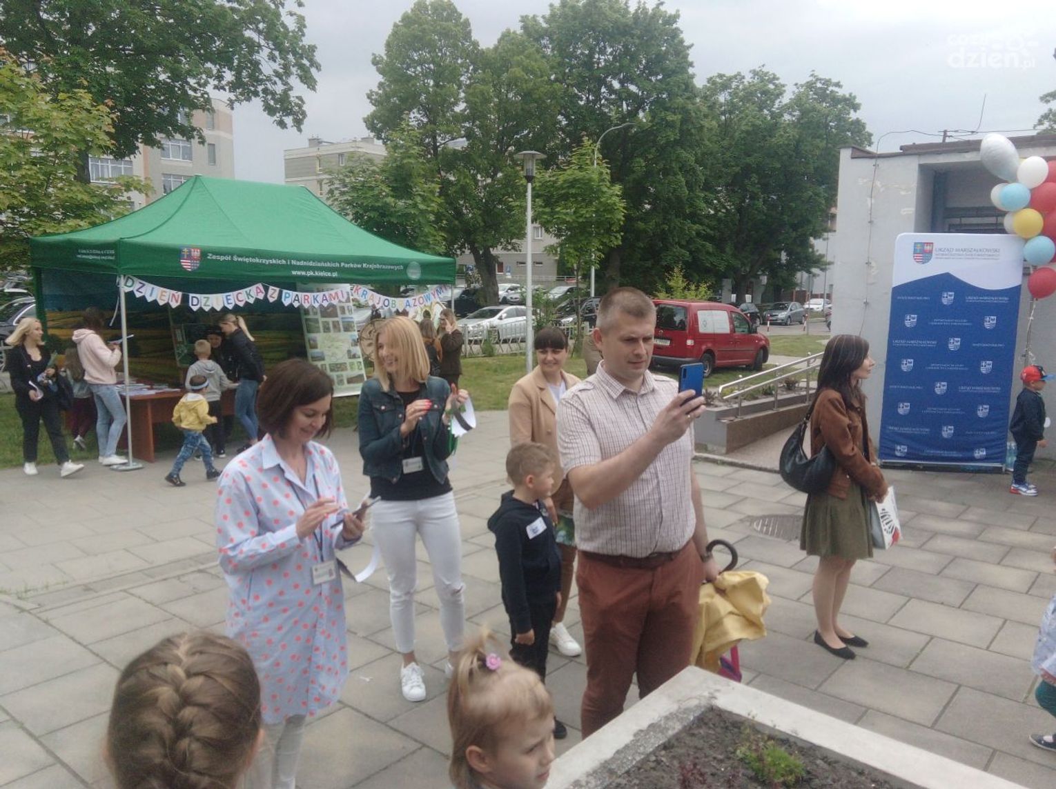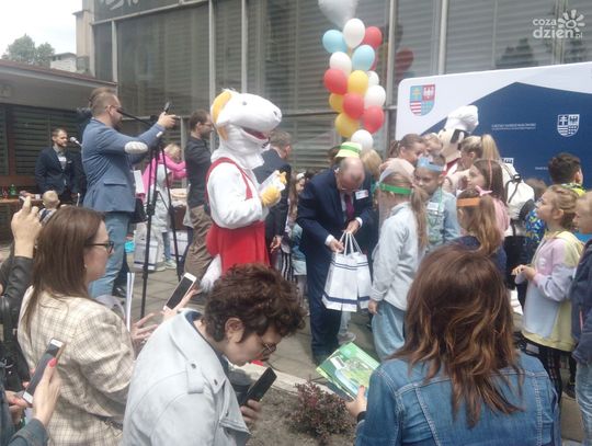 Przy Urzędzie Marszałkowskim pełno jest dzisiaj dzieciaków obchodzących Dzień Dziecka. Nie zabrakło różnych zabaw i atrakcji. Były bańki mydlane, słodka wata cukrowa, losowanie zabawek, a także wiele gier i animacji, przygotowanych przez Zespół Świętokrzyskich i Nadnidziańskich Parków Krajobrazowych oraz Europejskie Centrum Bajki im. Koziołka Matołka w Pacanowie.