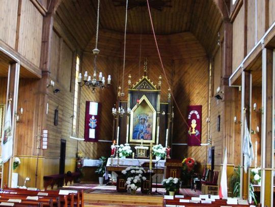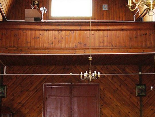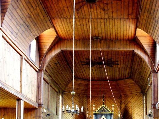 Wnętrze świątyni w całości jest wykonane w drewnie. Choć prezentuje się nieco okazalej niż jego architektura zewnętrzna, nie kłuje w oczy przepychem.