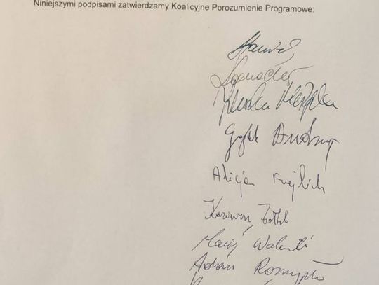 Pod umową koalicyjną podpisali się: Bożena Kornacka, Andrzej Gajek, Alicja Frejlich, Kazimierz Żółtek, Adam Rozczypała, Wacław Rodek, Tomasz Staniek, Maciej Wolański, Małgorzata Jalowska.