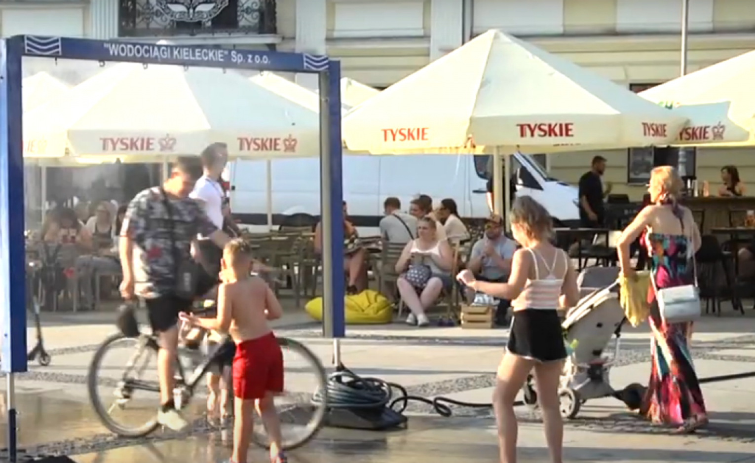 - Kurtyny wodne to takie ramki, pod którymi można przejść i się ochłodzić. Nie płynie z nich woda, ale jest rozpylana mgiełka za pomocą specjalnych dysz, dzięki czemu możemy zarówno zaznać przyjemnej ochłody, jak i zadbać oszczędność wody, bo te kurtyny są oszczędniejsze, niż strażackie – mówił Ziemowit Nowak z Wodociągów Kieleckich.