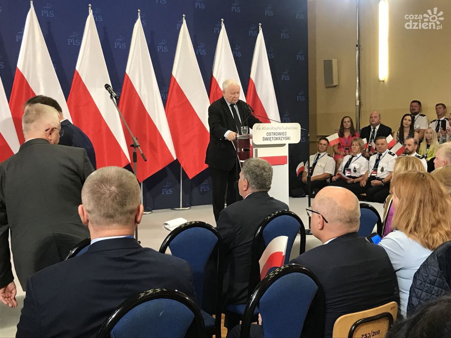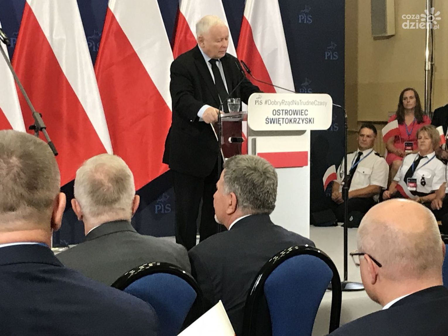 Jarosław Kaczyński zareagował też na hasła jakimi przywitała go grupa ostrowczanek krzyczących "Twoja wina". Stwierdził, że jeżeli trzeba wziąć winę za zmianę tego systemu, to bierze ją na siebie. Oskarżył też politycznych poprzedników, a więc obecną opozycję o nienawiść za to, że obecna władza przerwała im lata dobrobytu. A dowodem ma być wystąpienie Donalda Tuska w Radomiu.