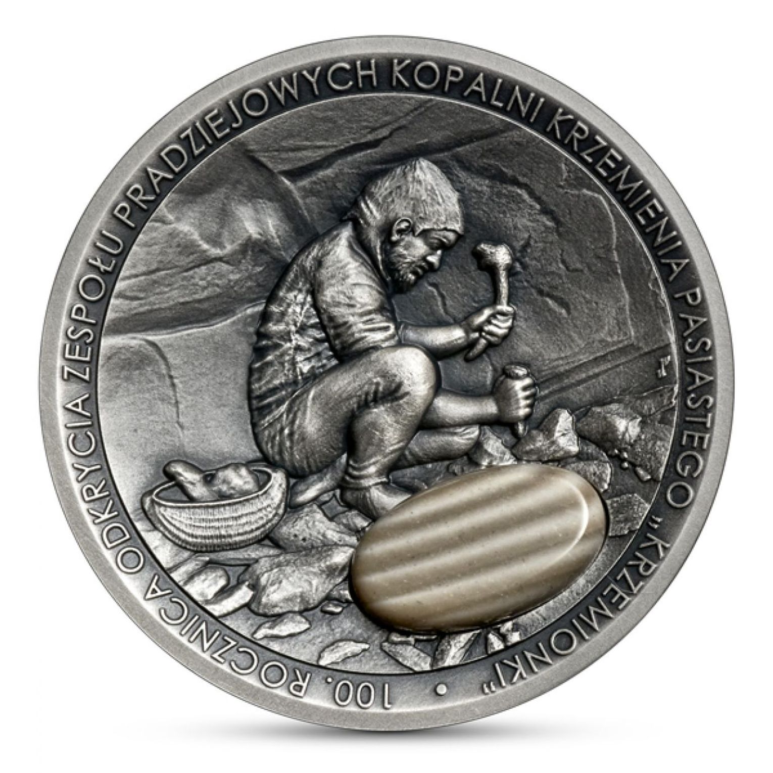 100- lecie odkrycia neolitycznych kopalni krzemienia pasiastego to wyjątkowa okazja nie tylko do zorganizowania całotygodniowych imprez. Taki jubileusz wymagał równie znaczącego pamiątki. A jest nią srebrna, kolekcjonerska moneta oczywiście ze złotem Gór Świętokrzyski czyli krzemieniem pasiastym.