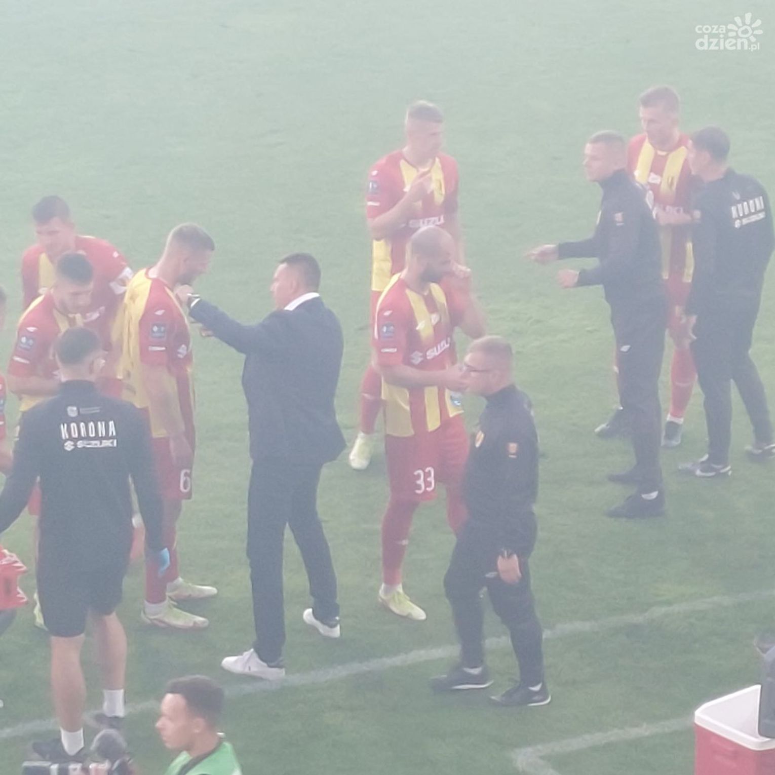 Pierwsza połowa nie zachwyciła, starania obu stron nie przełożyły się na sytuacje bramkowe. W Koronie najbardziej bramce Kacpra Tobiasza zagroził Shikavka, a już w doliczonym czasie szarżującego Jakuba Łukowskiego faulem na żółtą kartkę zatrzymał Mateusz Wieteska, reprezentant Polski. Łukowski potem miał jeszcze jedną ciekawą akcję, ale po wejściu w pole karne nie wyszedł mu strzał. W odpowiedzi z prawej flanki zaatakował Artur Jędrzejczyk, co przyniosło gościom rzut rożny. – Pierwsza połowa dość przeciętna, brakowało składnych akcji i emocji – podsumował Dariusz Dziekanowski.