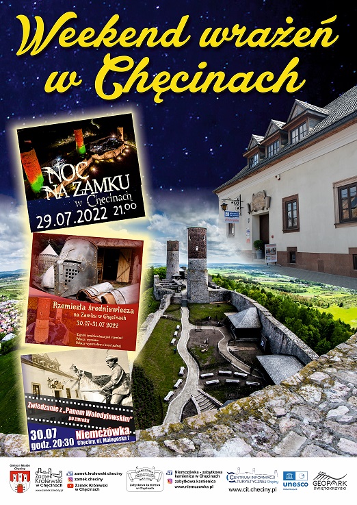 Organizatorzy zapewniają, że Noc na Zamku w Chęcinach to wyjątkowa i niecodzienna impreza, w której nie brakuje starannie dobranych elementów artystycznych. W piątek, 29 lipca, goście będą Meli okazję poznać historię oraz legendy związane ze znaną, świętokrzyską warownią. Spotkają również ducha Białej Damy, a w dobry humor wprowadzą ich zabawne scenki epokowe. Odbędzie się także widowiskowy pokaz teatru ognia. Wspólnie będzie można biesiadować przy ognisku w akompaniamencie dźwięków muzyki dawnej (prowiant we własnym zakresie). Nie zabraknie też wielu ciekawych konkursów nagrodami.