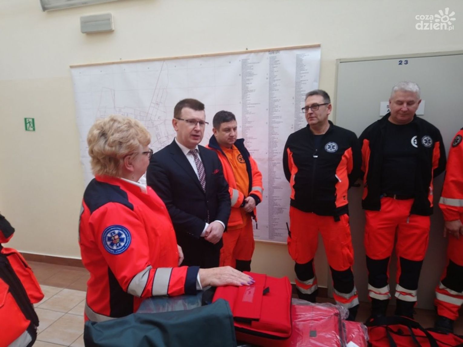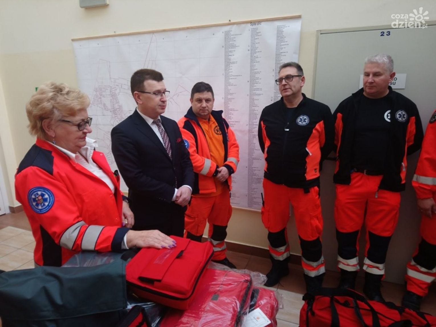 Torby kosztowały 5 tysięcy złotych. Prezydent przekazał dla pogotowia również wiszącą mapę miasta, której od dawna brakowało w placówce.
