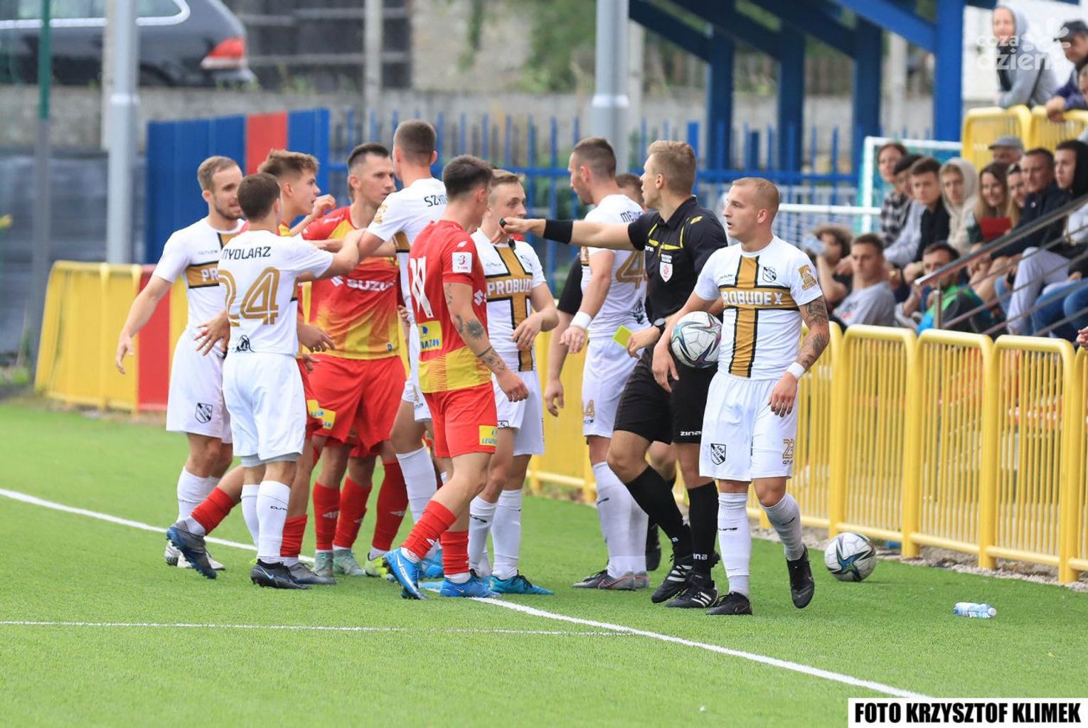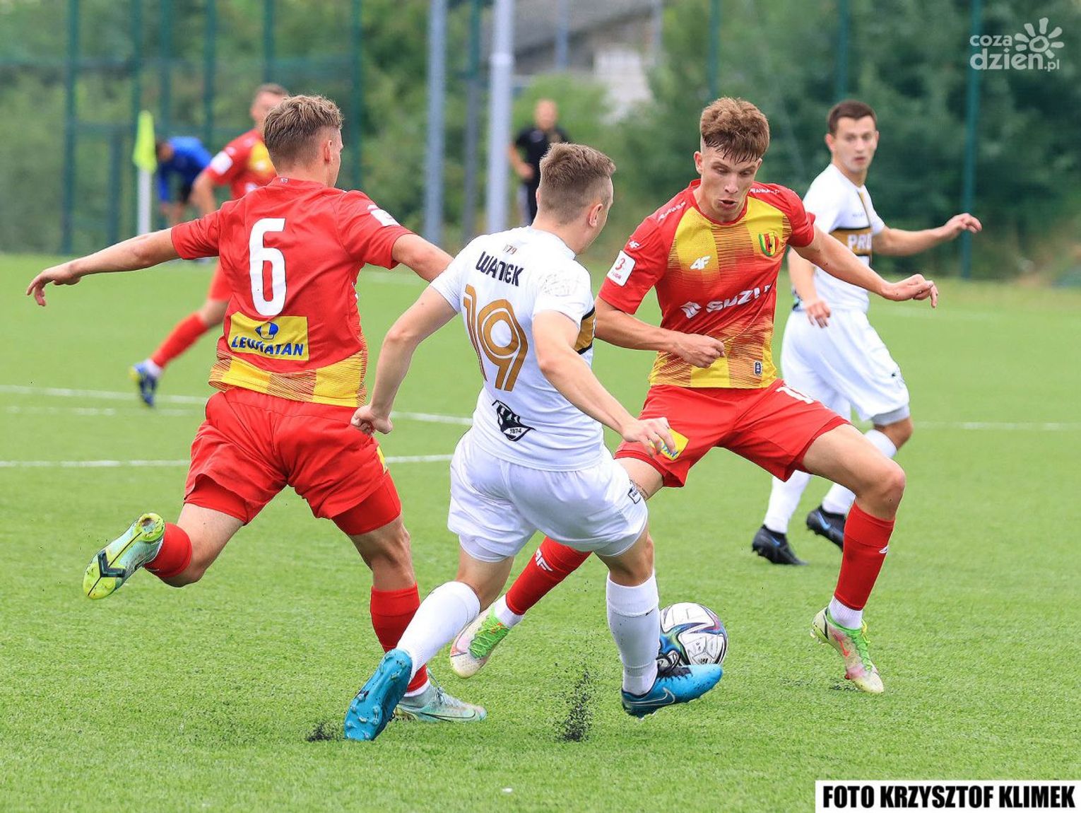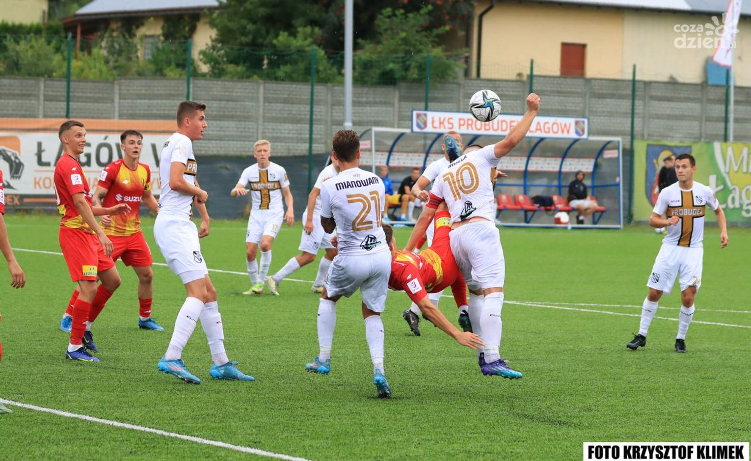 Marceli Zapytowski obejrzał dwie żółte kartki za... grę na czas. Wszedł za niego Szymon Płocica i dał sobie radę. - Końcówka była ciężka, ale daliśmy radę. Z tego remisu z jednej strony się cieszę, ale odczuwam niedosyt - skwitował Mariusz Arczewski, trener Korony II, pochodzący z Łagowa. - Do przerwy Korona II mogła zamknąć mecz, zmarnowała kilka bardzo dobrych okazji - powiedział Ireneusz Pietrzykowski. Miał na myśli sytuacje Miłosza Strzebońskiego i Adriana Bielki. Prowadzenie gościom na oczach Pawła Golańskiego, dyrektora sportowego Korony dał uderzeniem z dystansu Dawid Lisowski.