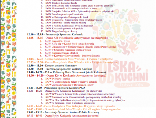 W ubiegłym roku wyróżnienie w całym konkursie za Zalewajkę Świętokrzyską trafiło do Koła Gospodyń Wiejskich ze Skarżyska Kościelnego. Koła Gospodyń Wiejskich podczas wydarzenia oceniane będą też w konkursie artystycznym, a gospodynie staną do rywalizacji o tytuł miss wdzięku.